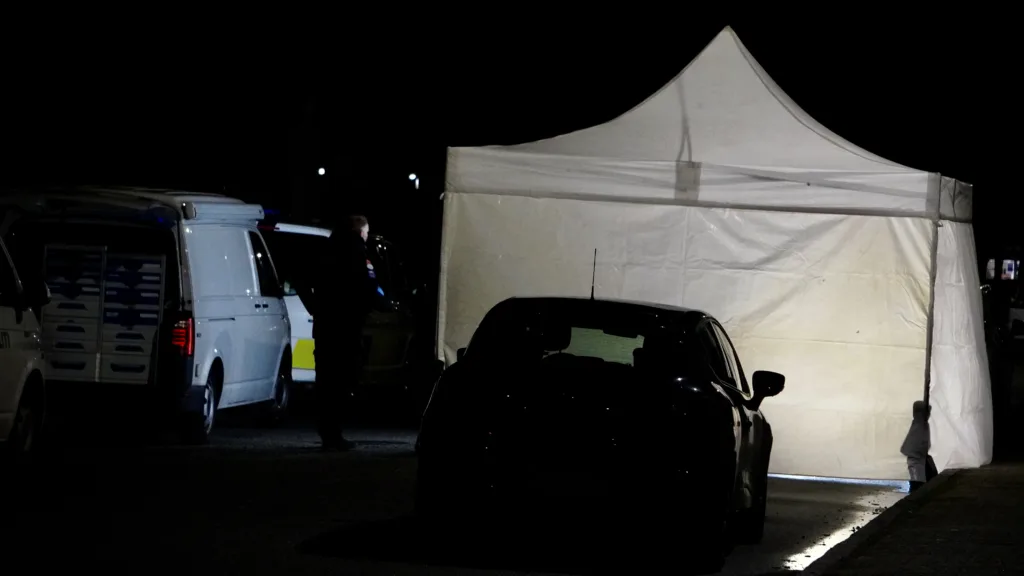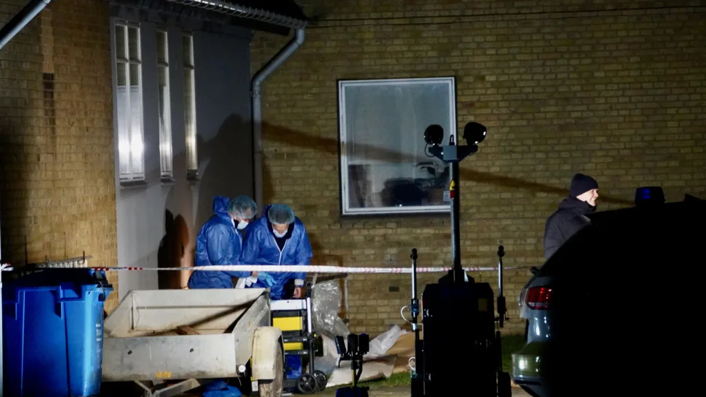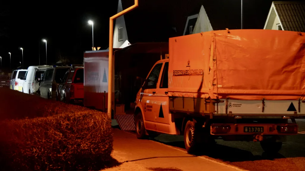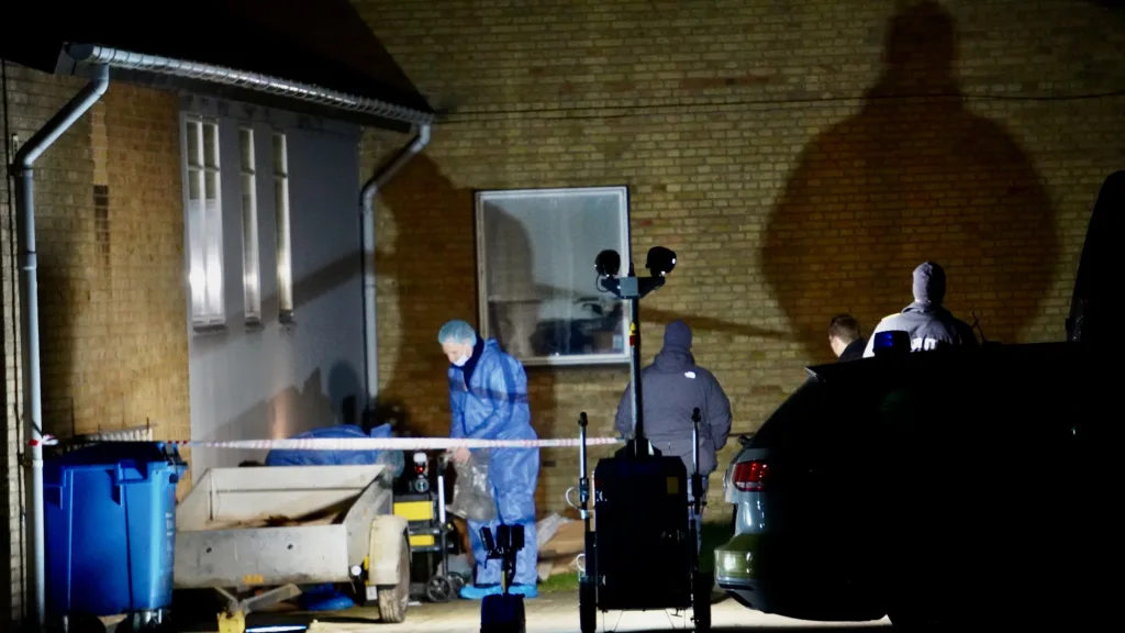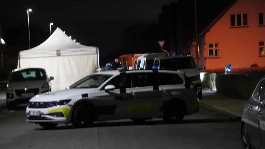 På stedet er der både teknikere og retsmedincere, og der er opsat et stort, hvidt telt.