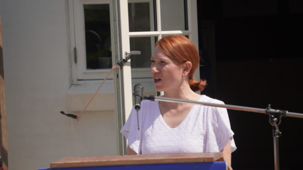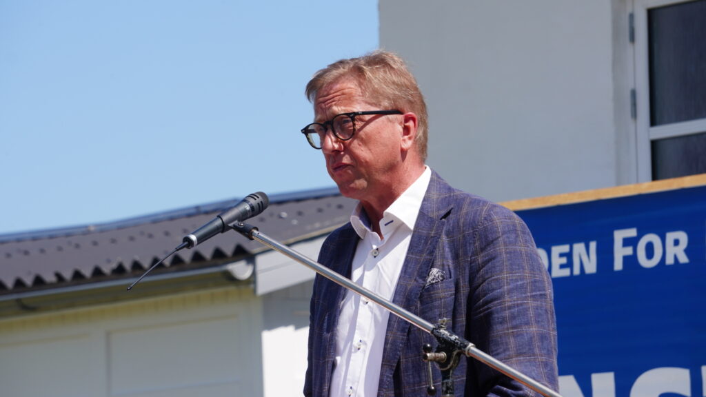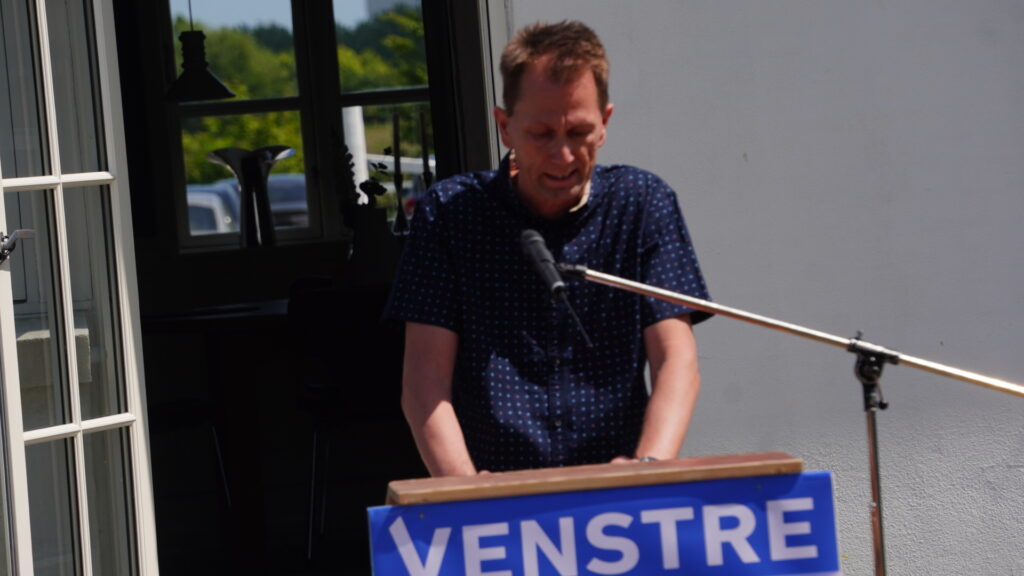 På græsplænen på familien Kingods gård stod lokalformand Søren Schou og bød velkommen til hver enkelt fremmødt. Da klokken rundede 12:00 gik talerne i gang.