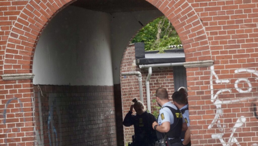 Politiet havde også en narkohund på stedet, som søgte i en baggård, ligesom politiet har været til stede i en lejlighed. Politiet, der arbejdede på stedet, havde alle skudsikre veste på.