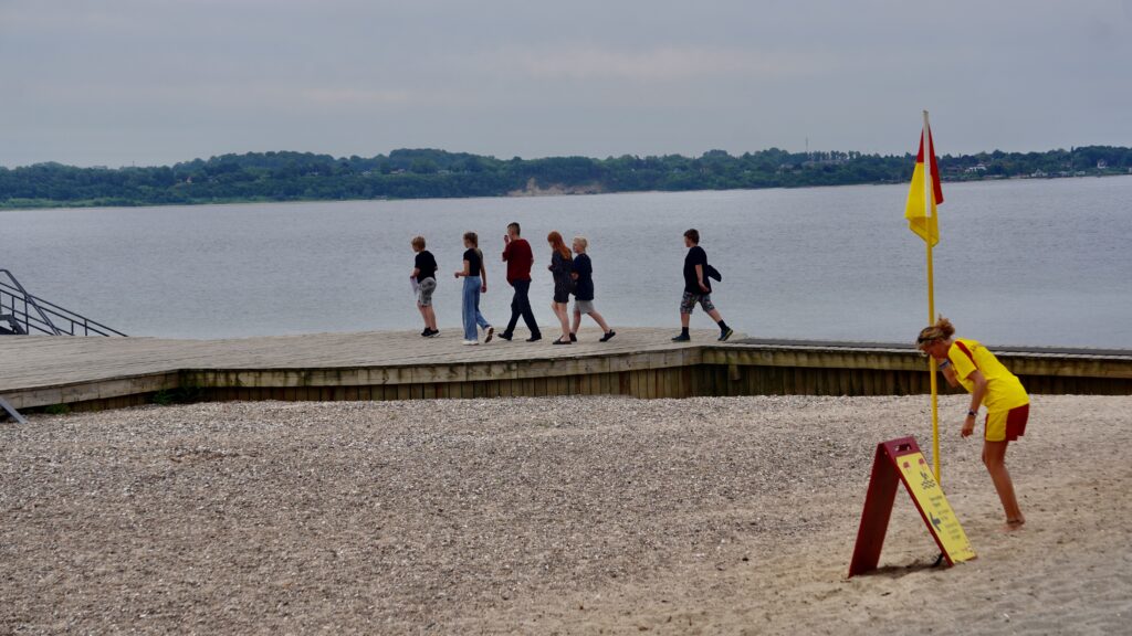 – Fordi selvom der ikke nødvendigvis er nogen ude at bade, er det vigtigt, at vi kommer ud og spreder budskabet, så vi har en masse flyers med at komme ud og snakke med badegæsterne og informere om sikkerheden, fortæller Anton.