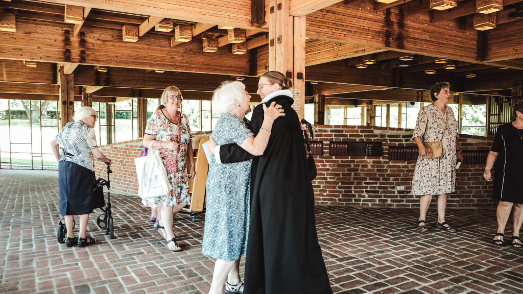 – Det er fantastisk at blive mødt med den tillid, man bliver mødt med som præst. Det er en stor ære, når mennesker fortæller om deres glæder og sorger, når der er noget vigtigt på spil i livet, eller man står ved en skillevej, og på den måde være medvandrer i menneskers liv og tro. Og så er det også min opgave som præst at kunne åbne gardinet lidt til himlen – at turde vise en vej eksempelvis for, hvordan man kan bede en bøn helt enkelt om det, der ligger én på hjerte, at lyse velsignelsen eller turde tale om en guddommelig virkelighed, også lige midt i vores daglige liv med hinanden, siger Karen Frendø Ebbesen.