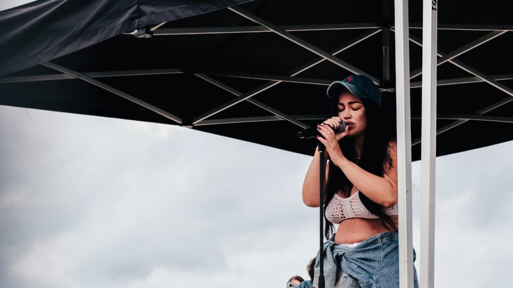 – For 13 dage siden blev jeg mor til en datter – ved en fødsel gennem kejsersnit. Nu er jeg her og håber I vil dele musikken med mig, til min allerførste koncert efter fødslen, fortalte Aura Dione sagte, gennem mikrofonen.