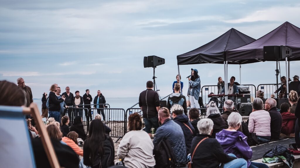 Alligevel holdte hun sig ikke tilbage, og begav sig ud blandt publikum for at instruerer fællessange. Som koncerten skred frem, skinnede solen og oplyste Fyn i smukke farver, kulisse for aftenens begivenheder var sat. Mennesker kyssede, børn legede i sandet, og alle nød stemningen, der nærmest omfavnede dem.