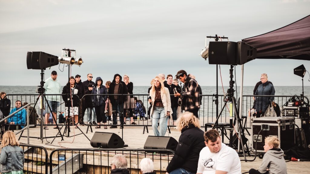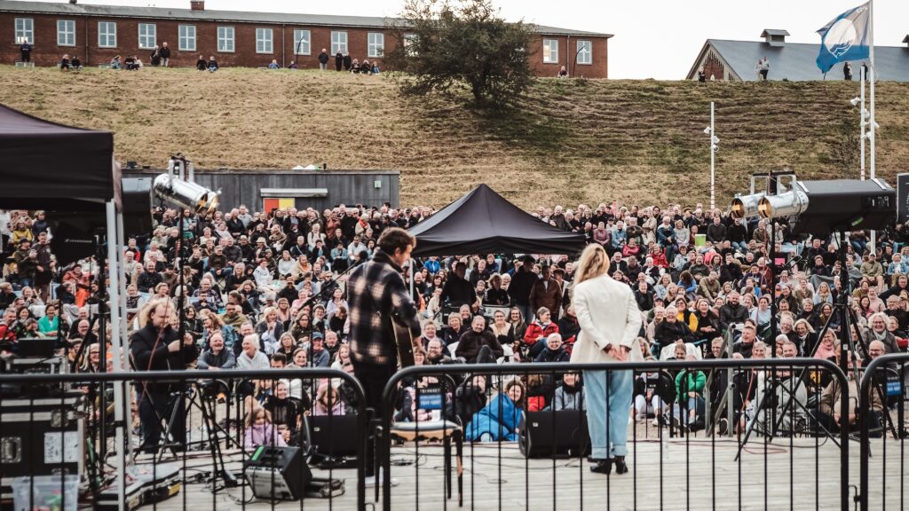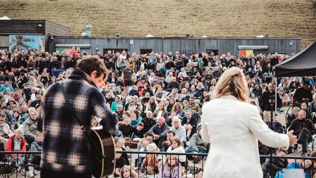 Folk måtte sprede sig godt ud over stranden for at høre plads til alle, og den bløde skyerne og solen bag byen skabte en intim atmosfære. Alberte fortryllede publikum med alt fra “Lyse nætter” til “Tju bang chokolademand”, samt en blanding af andre både ældre og nyere sange.