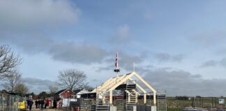 Rejsegilde på det første af eng- og strandhusene ved marinaen