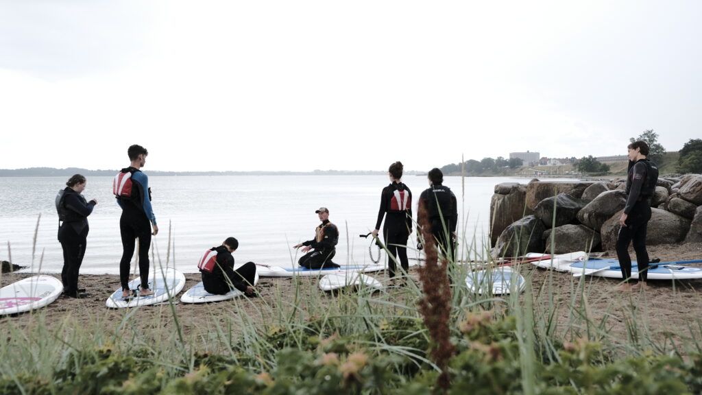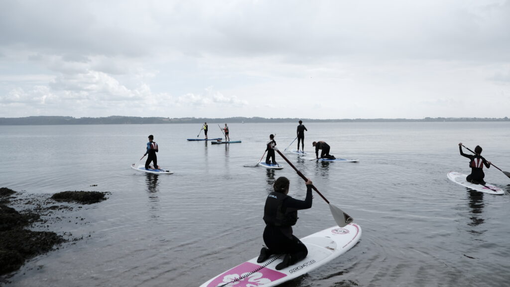 I dag er seks unge mødt op for at prøve kræfter med SUP-boarding på Lillebælt. Nogle er erfarne, andre er helt nye, men der er plads til alle.