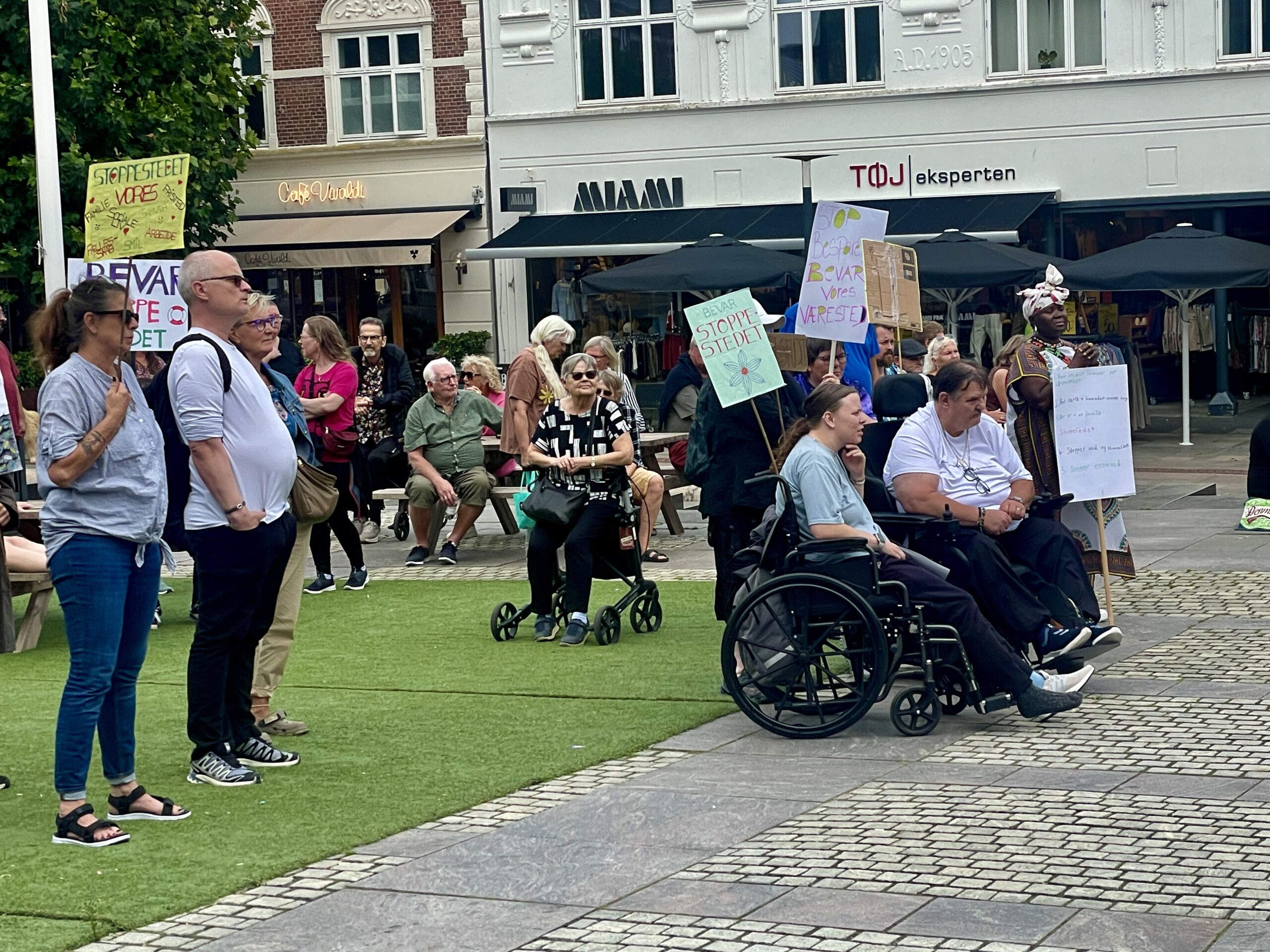 Mandag før byrådsmødet i Fredericia var der en markant demonstration på rådhuspladsen. Det var en kraftig manifestation fra en gruppe borgere, der er berørt af spareforslaget vedrørende Stoppestedet, et aktivitets- og samværstilbud for personer med psykisk sårbarhed, som kommunen planlægger at beskære økonomisk. Demonstrationen samlede mellem 50 og 75 borgere, der fremviste bannere og klart udtrykte deres utilfredshed med det fremsatte spareforslag, der nu er sendt i høring.