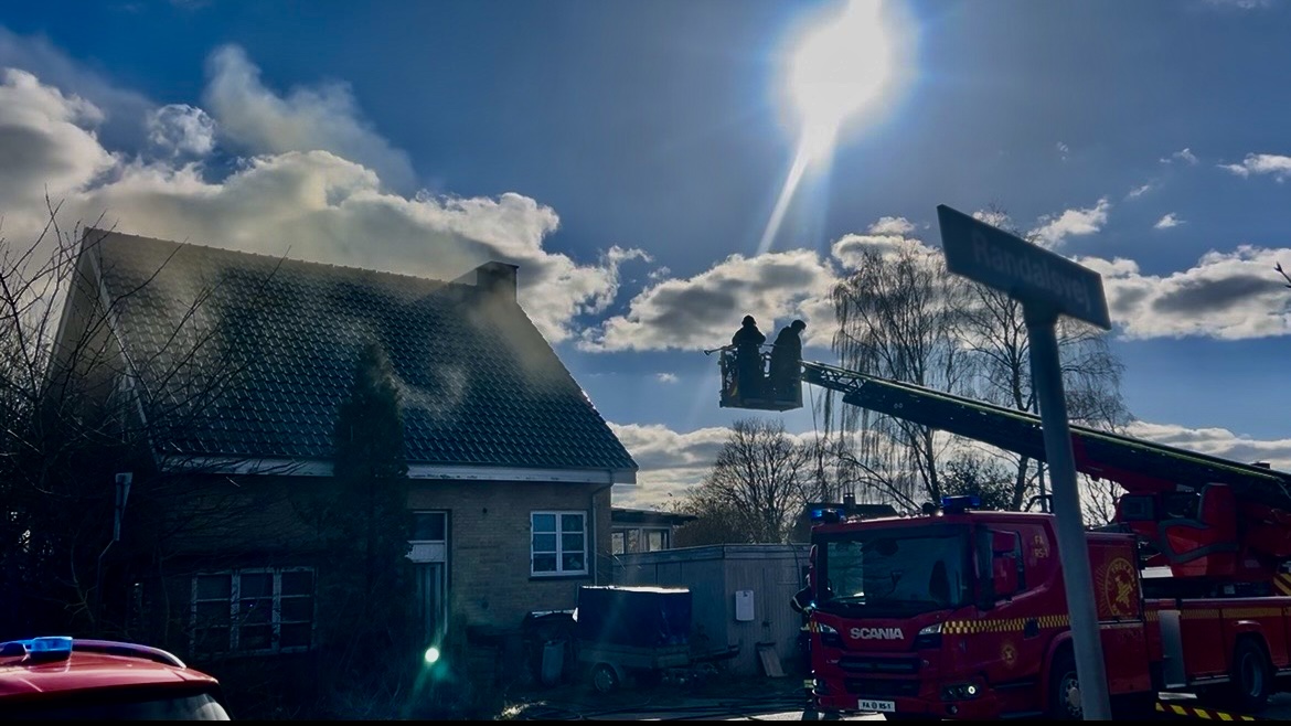 Politiet har spærret en del af Randalsvej af, mens brandvæsnet arbejder på at få kontrol over røgen. Indsatslederen fra TrekantBrand leder indsatsen, og vi ved nu, at der ikke er folk i huset.