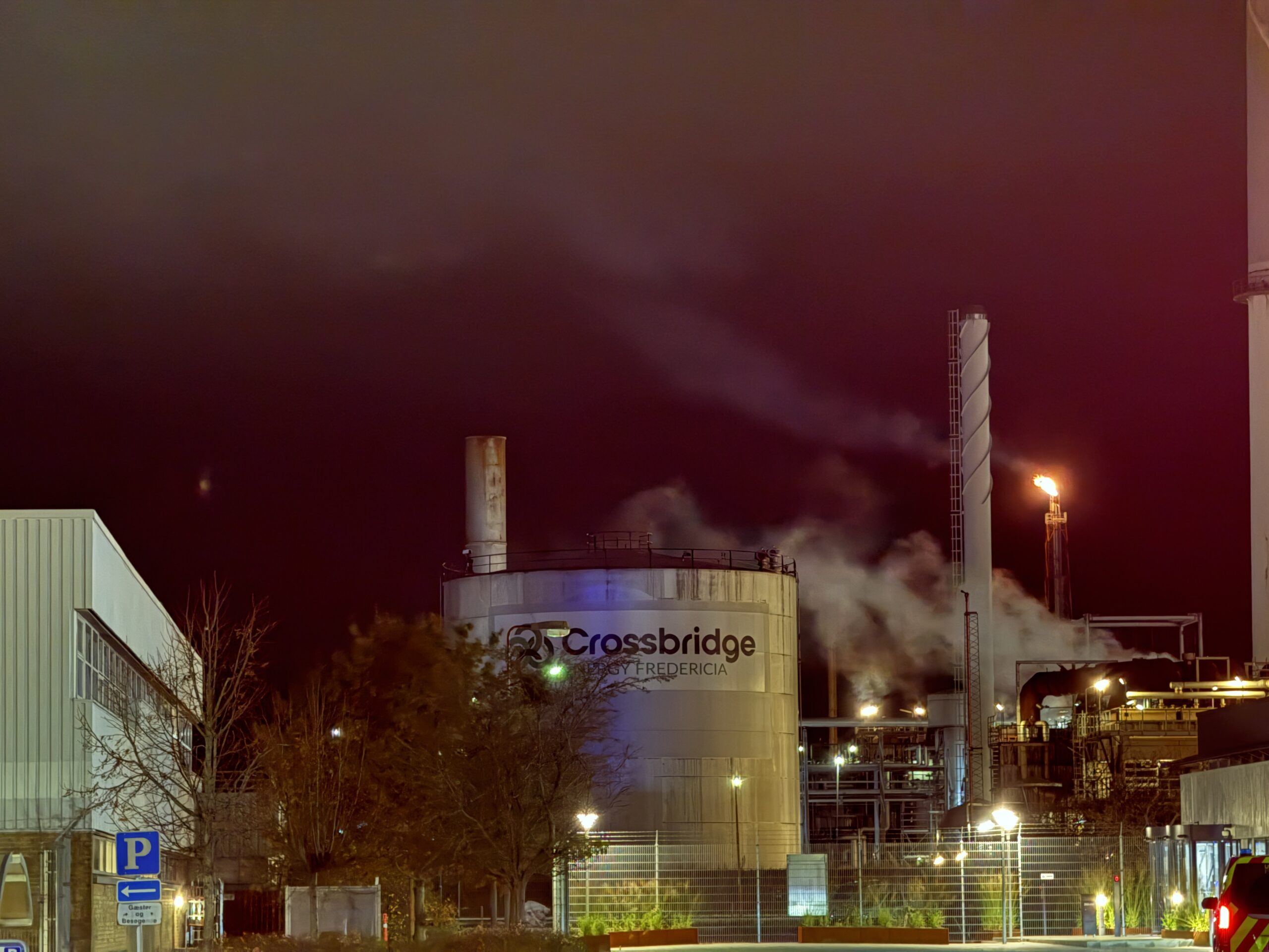 TrekantBrand er søndag aften blevet kaldt ud til en brand hos raffinaderiet Crossbridge Energy på Egeskovvej i Fredericia.