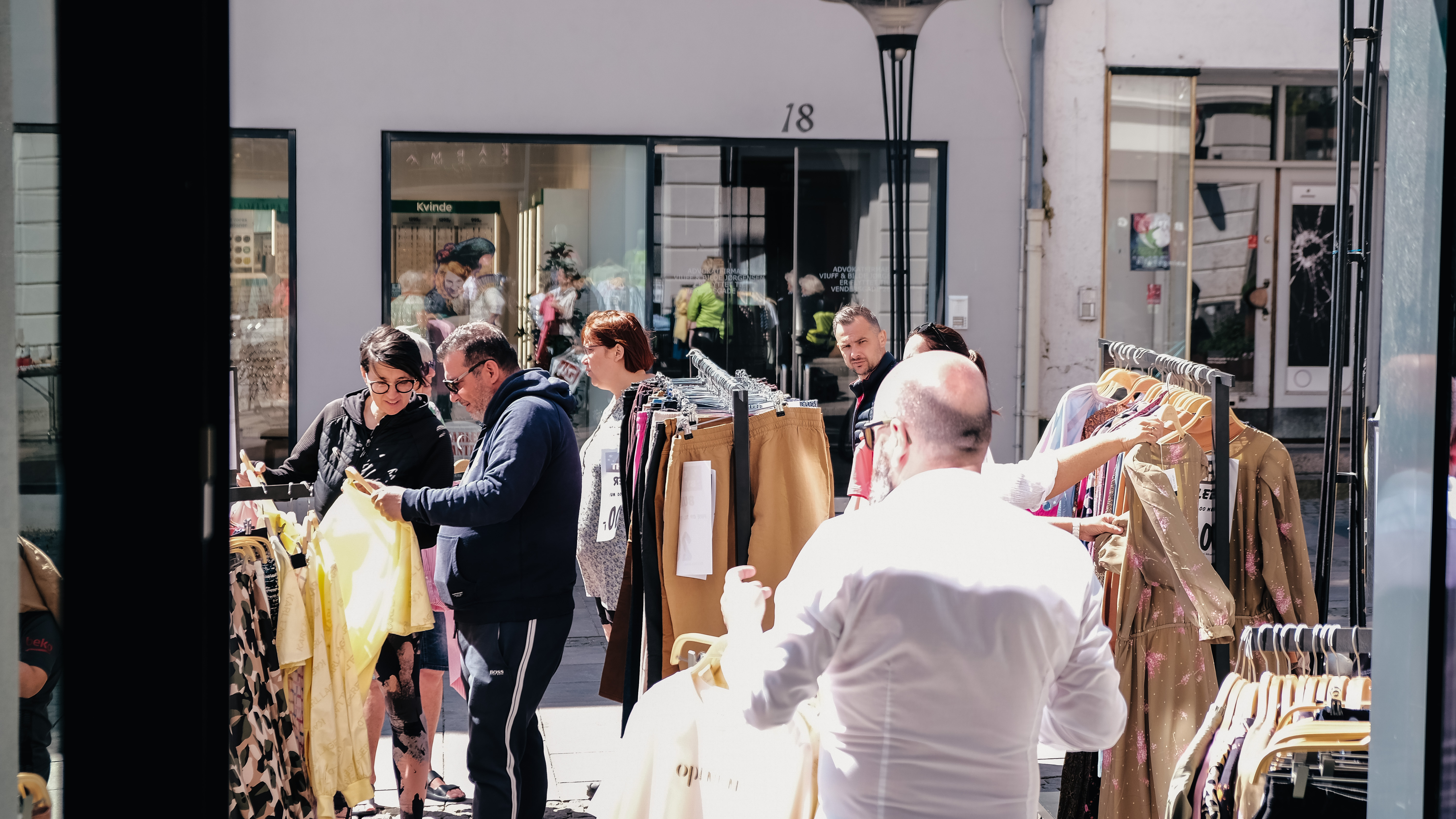 Mens folk strømmede til Danmarksgade for at deltage i festlighederne og finde de bedste tilbud, kunne man se Jan Juul, indehaver af Karma by Juul suse frem og tilbage med kjoler blafrende i hånden.