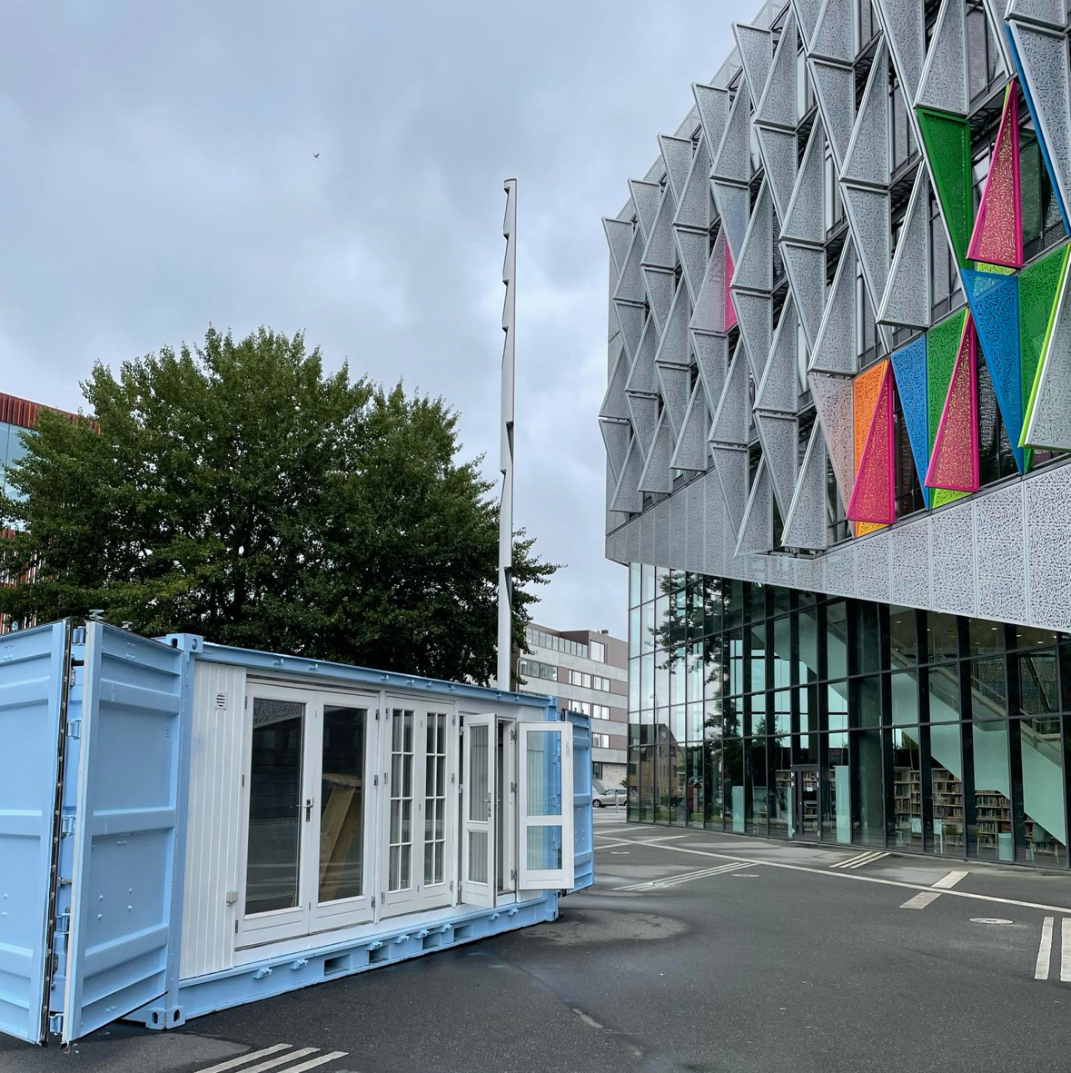 Den lyseblå container er navngivet Campus Containeren, og den er placeret på campuspladsen fra d. 27. august frem til d. 27. september, hvor den er svær at overse blandt de mange studerende. Her kan man møde Malu Uldall Møller og Sarah B. Hansen fra Campus Kolding, blive klogere på Kolding som studieby og afhente deltagerarmbånd til studiestartsfestivalen KONTUR i god tid. Og som en ekstra service vil der være gratis kaffe til de studerende, når de kigger forbi til en snak.