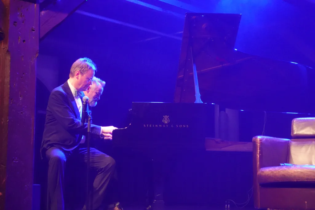Hans startede med at fortælle, at Claus er uddannet pianist og at de mødte hinanden i konservatorietiden. Så fra Runas klaverundervisning til en konservatorieuddannelse er der langt, men vejen førte til alt fra ”fly me to the moon” som Hans og Claus spillede sammen på flyglet til Klaus Wunderhits, der er en form for Ole Erling på speed.