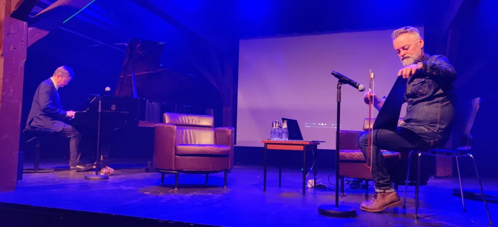 Af musikalske indslag var der bla 2 hvor Claus spillede på sav og 2 hvor de spille 4 hånds på klaver. Anmelderen havde gerne set lidt mere musik da de begge er kompetente musiker og Claus håndterer sav og bue flot, det lød rigtig godt.