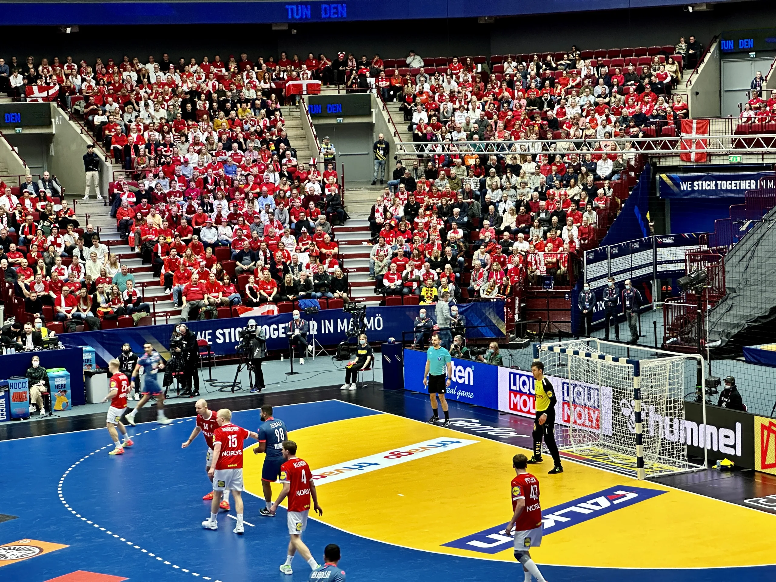 Danskerne modtog, som i de foregående kampe, stor opbakning i Malmö Arena, og de mange danske fans på lægterne kunne se deres helte gå til pause foran med 19-14.