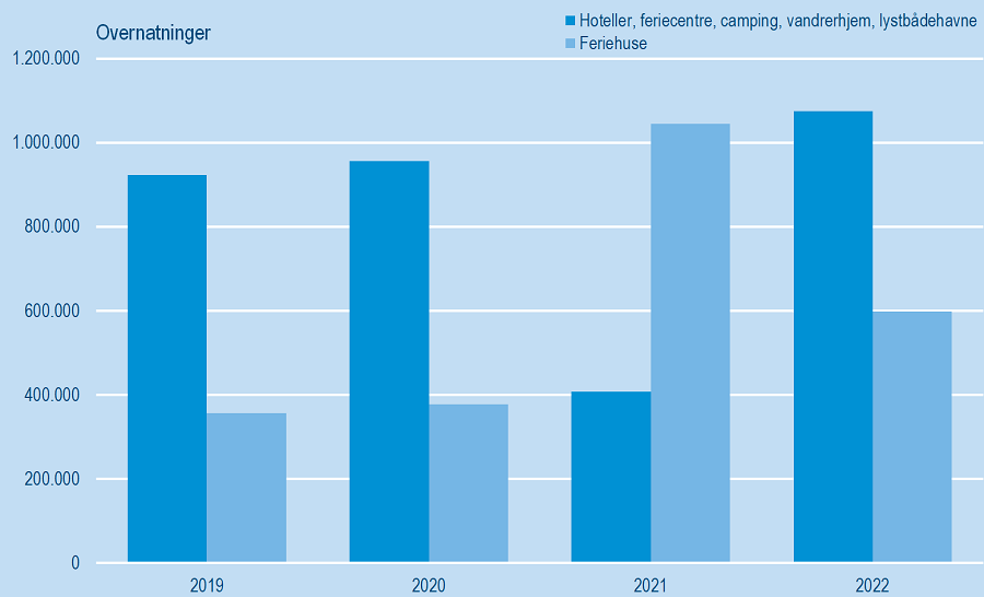 I 2022 bød februar på over 1 million overnatninger på hoteller, feriecentre, vandrerhjem og campingpladser i Danmark. Dette var en stigning i forhold til 2019 og 2020, hvor tallet var 922.000 og 956.000, henholdsvis.