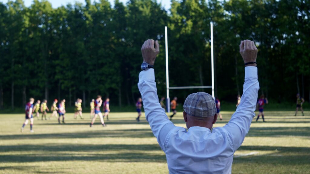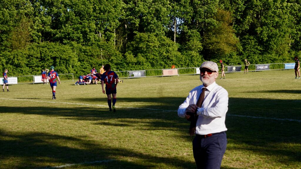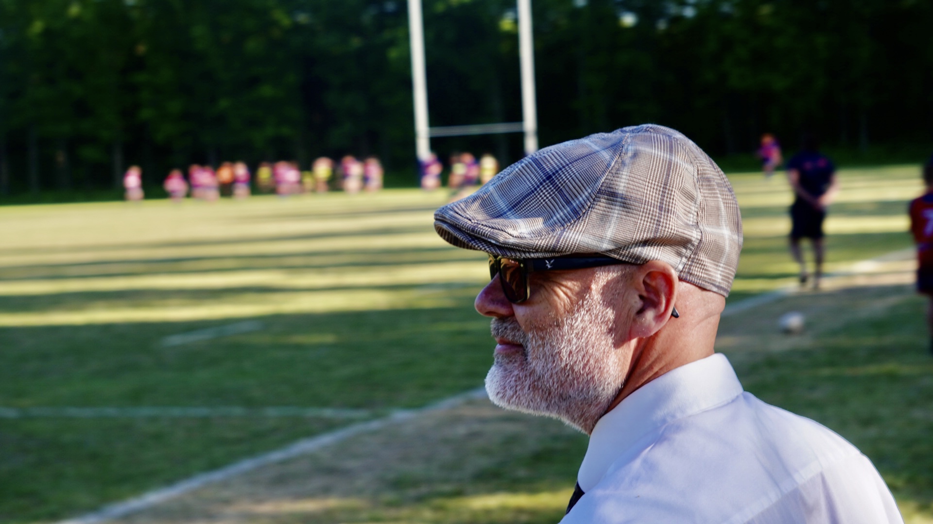 Allan Pertti Frandsen, formand for EGIF Rugby, står og styrer måltavlen under en kamp mellem EGIF Rugby og Aarhus RK. Imens deler han historien om EGIF Rugby med AVISEN.