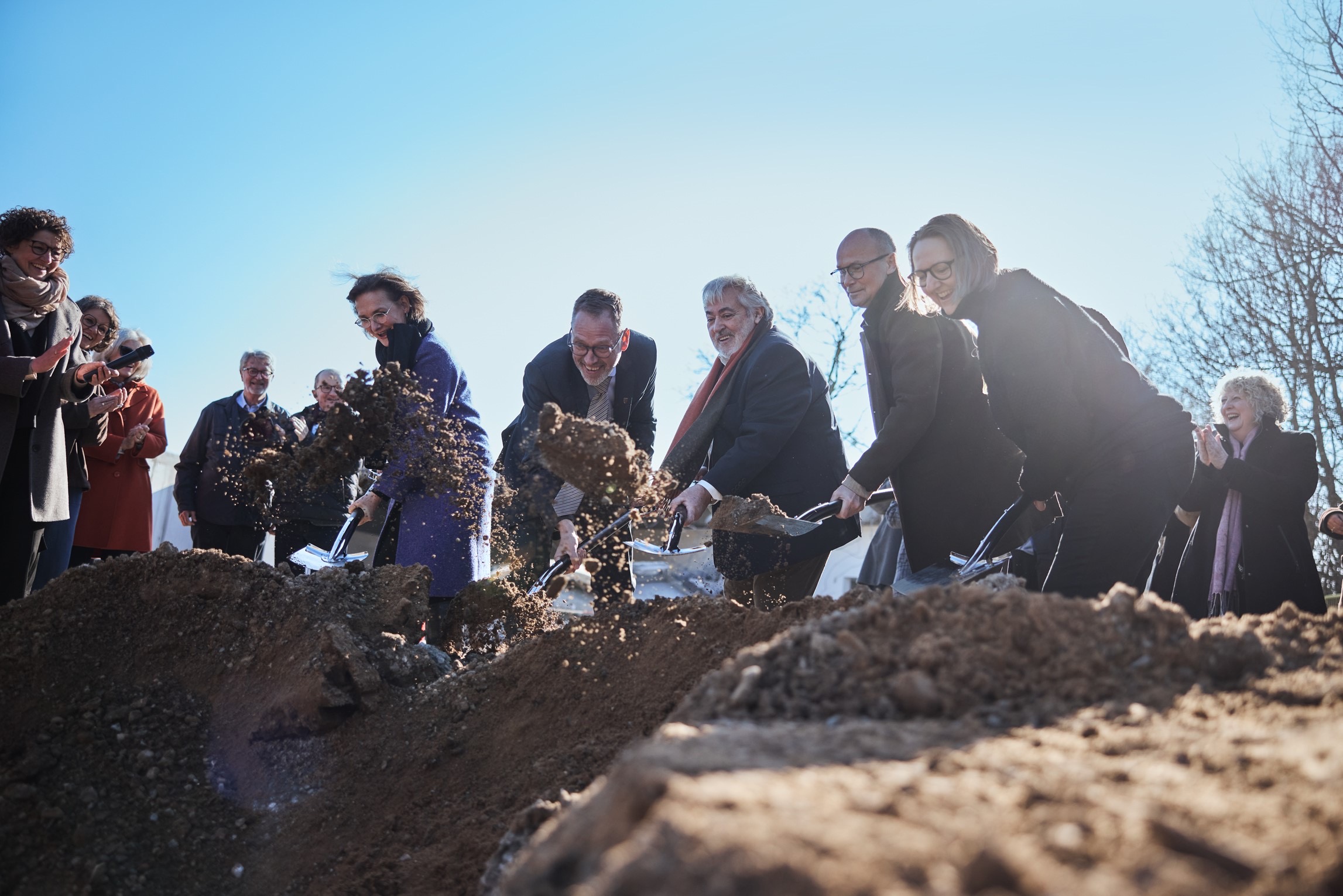 En solskinsdag i marts dannede rammen om første spadestik på Trapholts store ombygning ved Kolding Fjord. Foto: Kenneth Stjernegaard