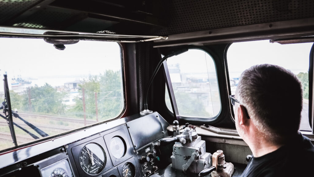 Lokomotivføreren, Jess Petersen, er en sand kender af jernbanesystemet. Han har et indgående kendskab til hver centimeter af de ti kilometer, der forbinder DB-terminalen med Fredericia Shipping på havnen i Fredericia.