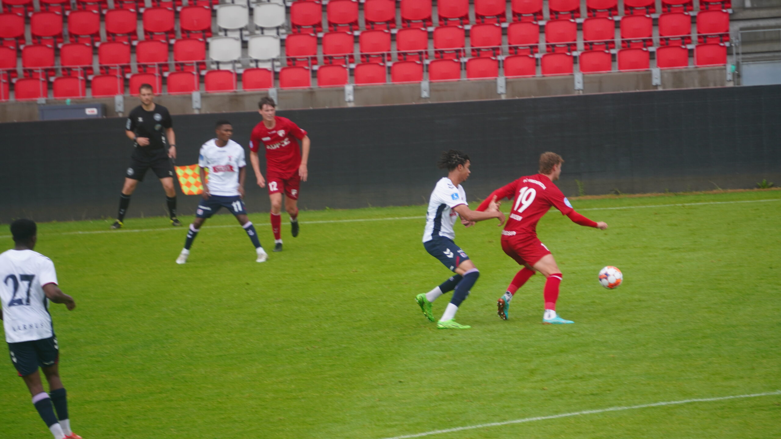 FC Eintracht Norderstedt, der til dagligt spiller i Regionalliga Nord, kom på banen med en klar plan og stærk disciplin. Tyskerne så ud til at være på vej mod en sejr, da de brød stillingen i det 43. minut. Det var angriberen Noah Awuku, der sendte bolden i nettet og bragte sit hold i front.