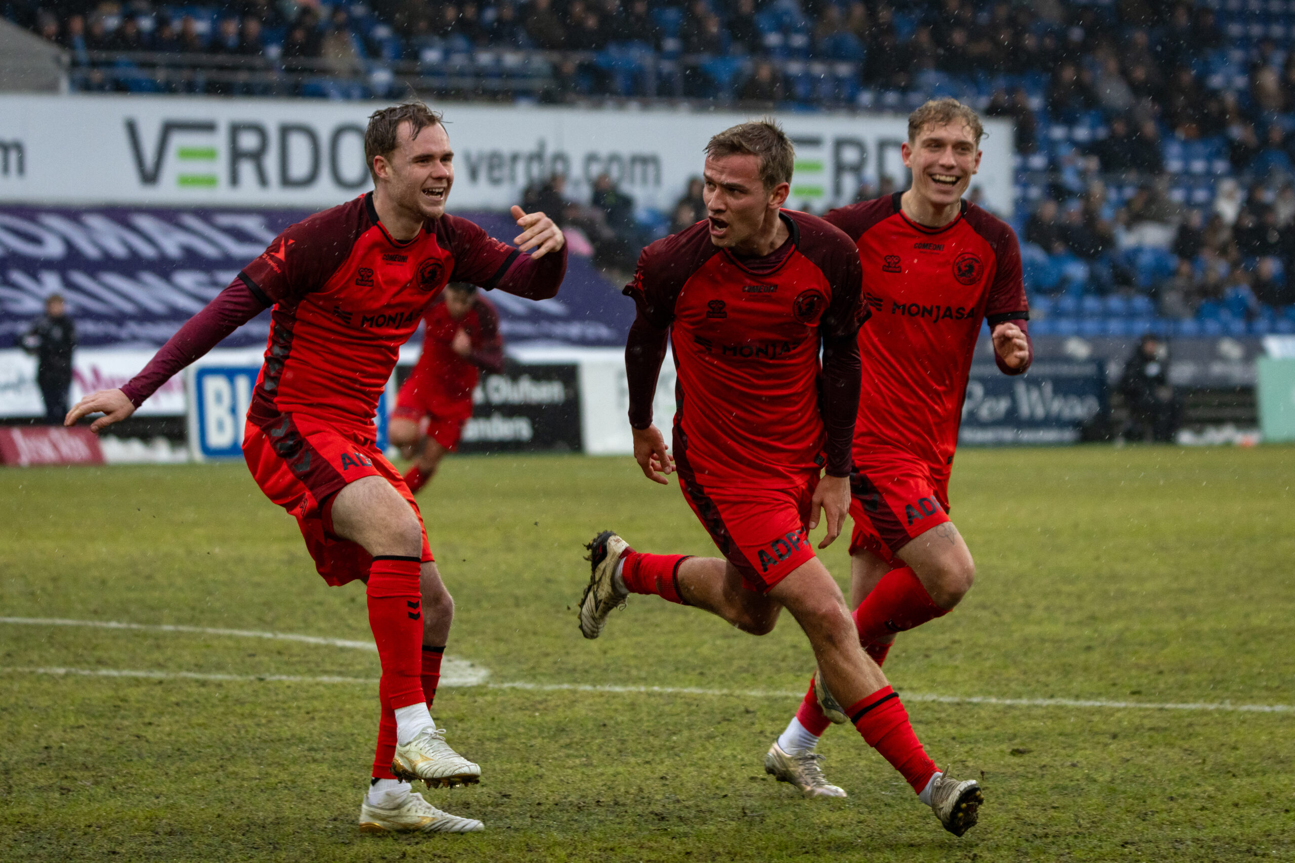 Det behøvede de heller ikke. Dommeren fløjtede af efter tre minutters tillægstid, og FC Fredericia kunne juble over en 2-1-sejr, der sender holdet op på en 10. plads med 21 point i 21 kampe – for første gang siden oktober over den streg, der skiller overlevelse fra nedrykning.