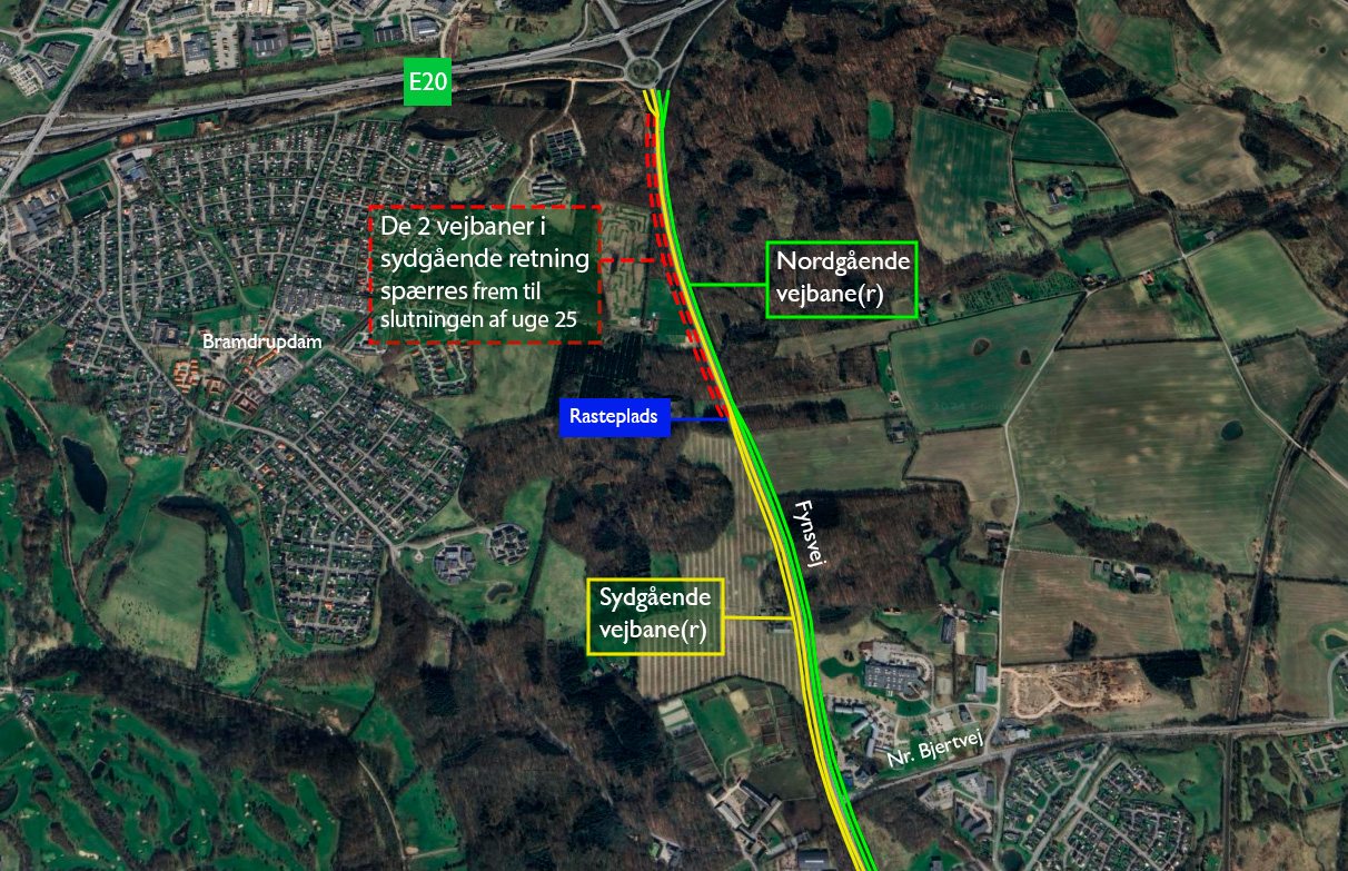 Fra fredag kl. 19 lukkes Fynsvej i sydgående retning fra den store rundkørsel ved motorvejen og frem til Nr. Bjertvej