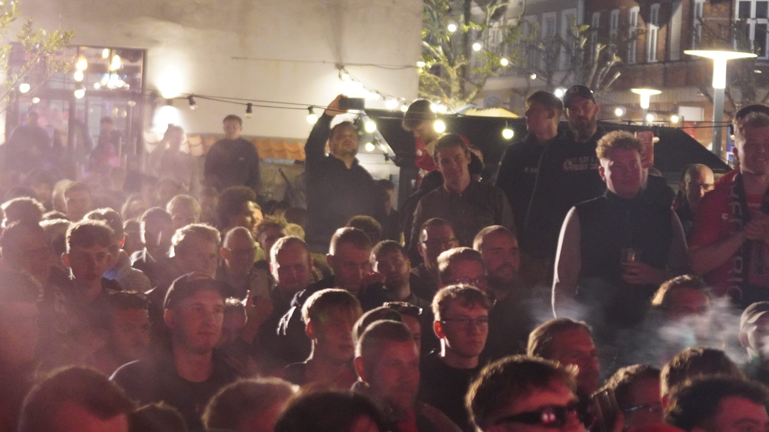 Når Alexander Brown efter en times tid slukker for musikken, bliver festen bestemt ikke mindre. Tværtimod samles alle fodboldfans nemlig til en fælles march mod Monjasa Park, hvor Fredericia spiller sæsonens sidste kamp mod Kolding IF.