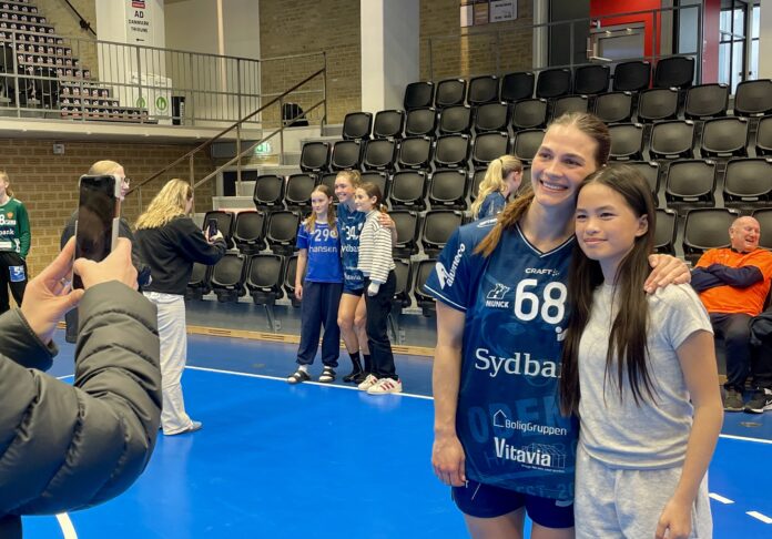 -Det er en del af gamet, at vi går lige så professionelt til sådan en kamp. Vi er glade for at få en sejr og give en oplevelse til nogle af dem, der skal spille mod os, siger Helena Elver omgivet af en masse børn, der ville have en selfie og autograf med den danske landsholdsspiller.