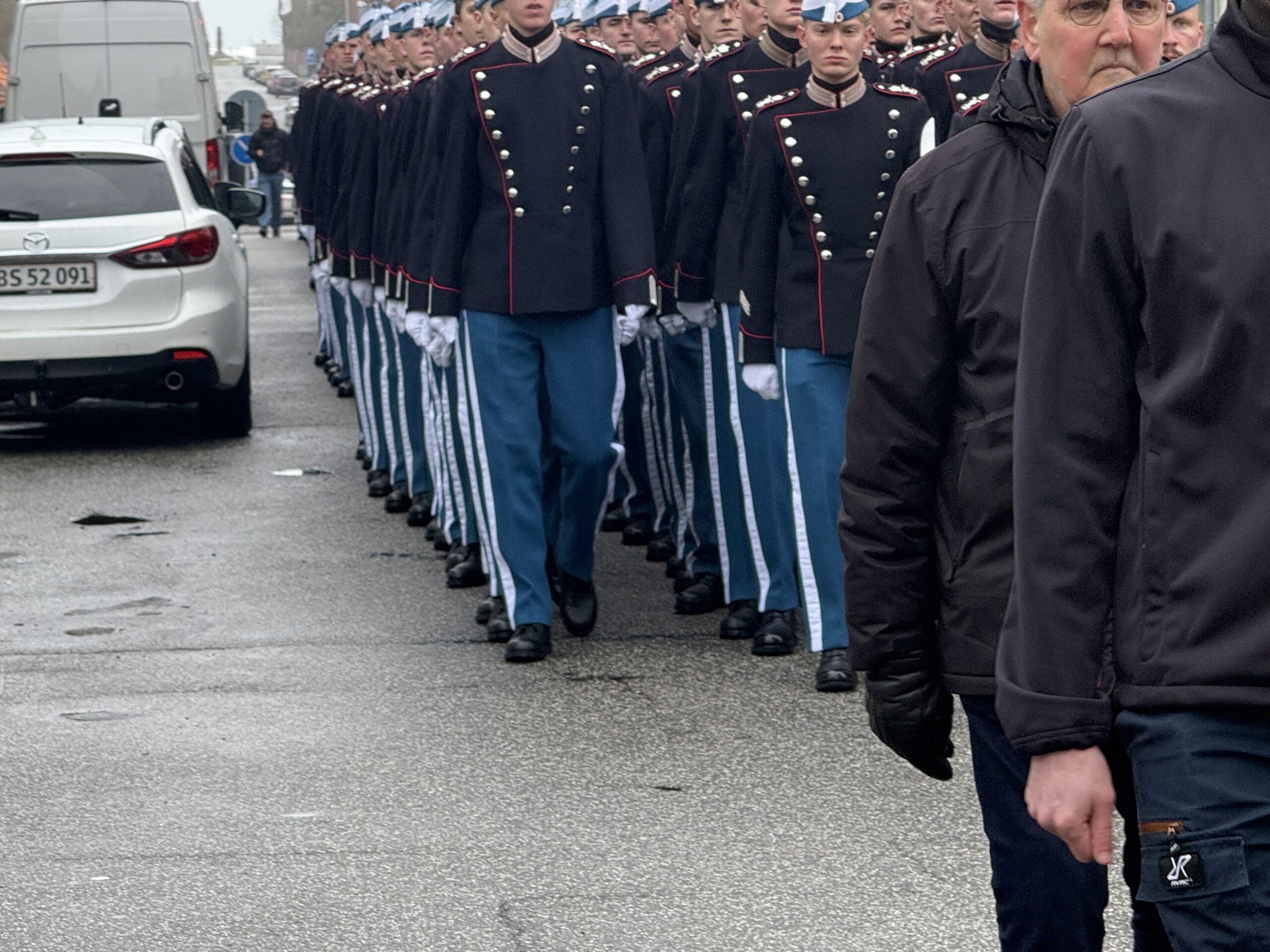 Sneen smeltede langsomt i gaderne, men kulden fra ugens frost hang stadig i luften, da 200 gardere lørdag formiddag marcherede gennem Fredericia med tambourmusik i spidsen.