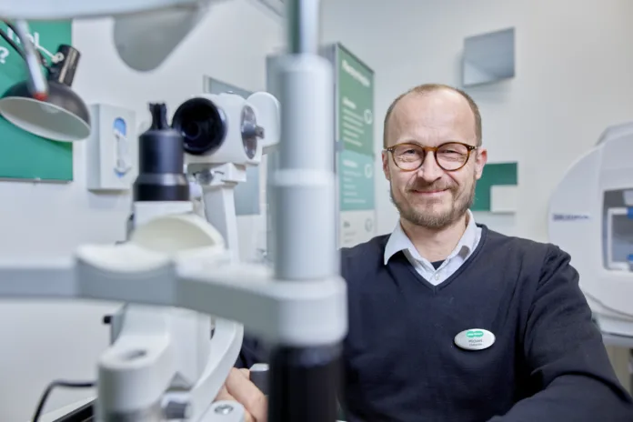 – Det er vigtigt med regelmæssige sundhedstjek – især hvis du er over 40 år. Her kan vi nemlig måle trykket i øjet og opdage tegn på grøn stær, før den gør skade på synet. Og vi kan hjælpe dig videre til øjenlæge for behandling, forklarer chefoptiker Michael Biegala fra Louis Nielsen Fredericia.