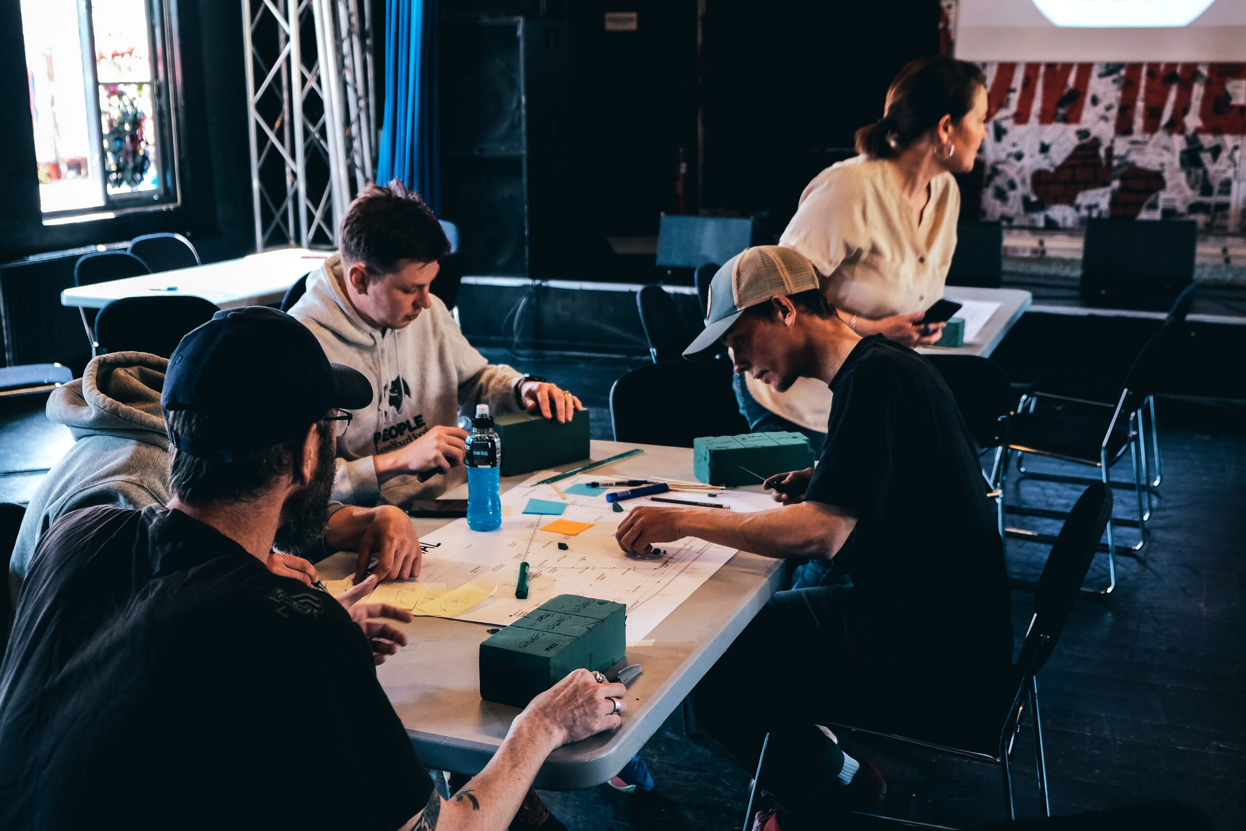 Workshoppen var præget af et åbent og kreativt miljø, hvor alle deltagere havde mulighed for at bidrage med deres ideer og forståelse for de forskellige aspekter af streetsport-kulturen. På hvert bord var der tegneredskaber, en plantegning og en klump oasis, som kunne bruges til at forme og bygge med.