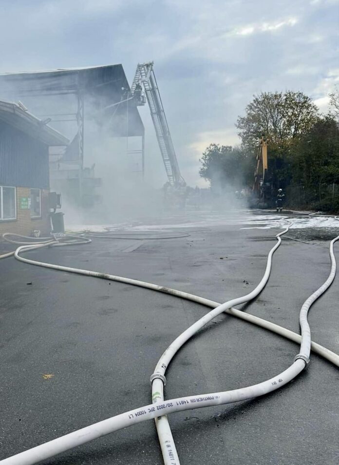 Branden har spredt sig til et oplag af kunstgødning, som udvikler en røg, der kan være sundhedsskadelig ved indånding. Det oplyser Syd- og Sønderjyllands Politi.