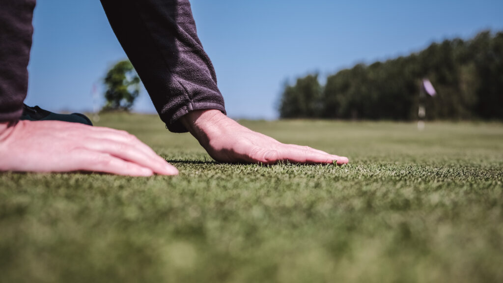 Græsset er utroligt kort, klippet til præcision, og føles under fødderne som et blødt tæppe. Det den detaljerede og nærmest meditative opmærksomhed på kvalitet og præcision, der forvandler en almindelig grøn græsplæne til en førsteklasses golfgreen, som er en oplevelse i sig selv.