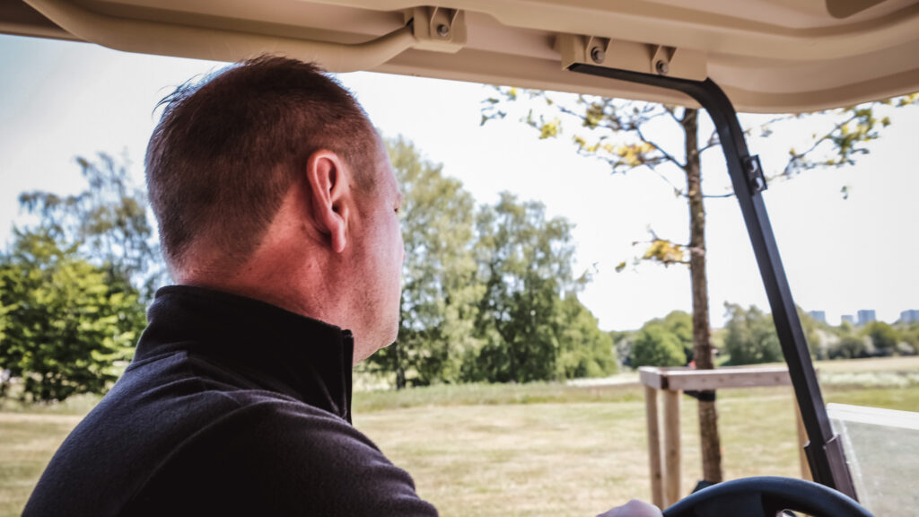 – Golfbaner og jeg har haft et indbyrdes forhold siden 2010. Min tid som sælger kørte i ring, og da mit første barn kom til verden, blev jeg ramt af en indre længsel efter at mestre et håndværk. Jeg ville kunne skabe noget med mine hænder, være mere nærværende og skabe en vis stabilitet for min familie. Derfor begyndte jeg at søge aktivt. Jeg ringede fra den ene golfklub til den anden, og efter en række samtaler og møder, fandt jeg mig selv her, fortæller Gundtoft med et glimt i øjet.