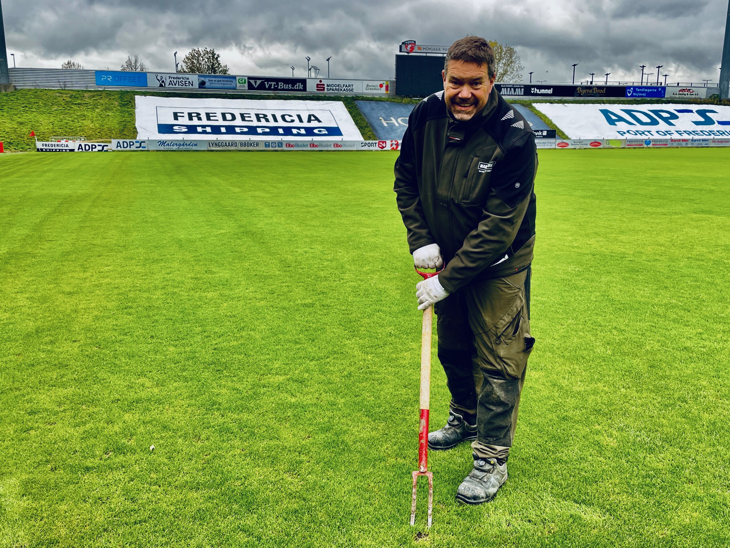 Det kræver sit at pleje et fodboldbane. Uddannelsen som groundsmand tager typisk 3,5 – 4 år afhængig af, hvor man er i systemet. I snart ti år har Henrik Hvildshøj Lindberg beskæftiget sig med de grønne baner. Det er en passion.