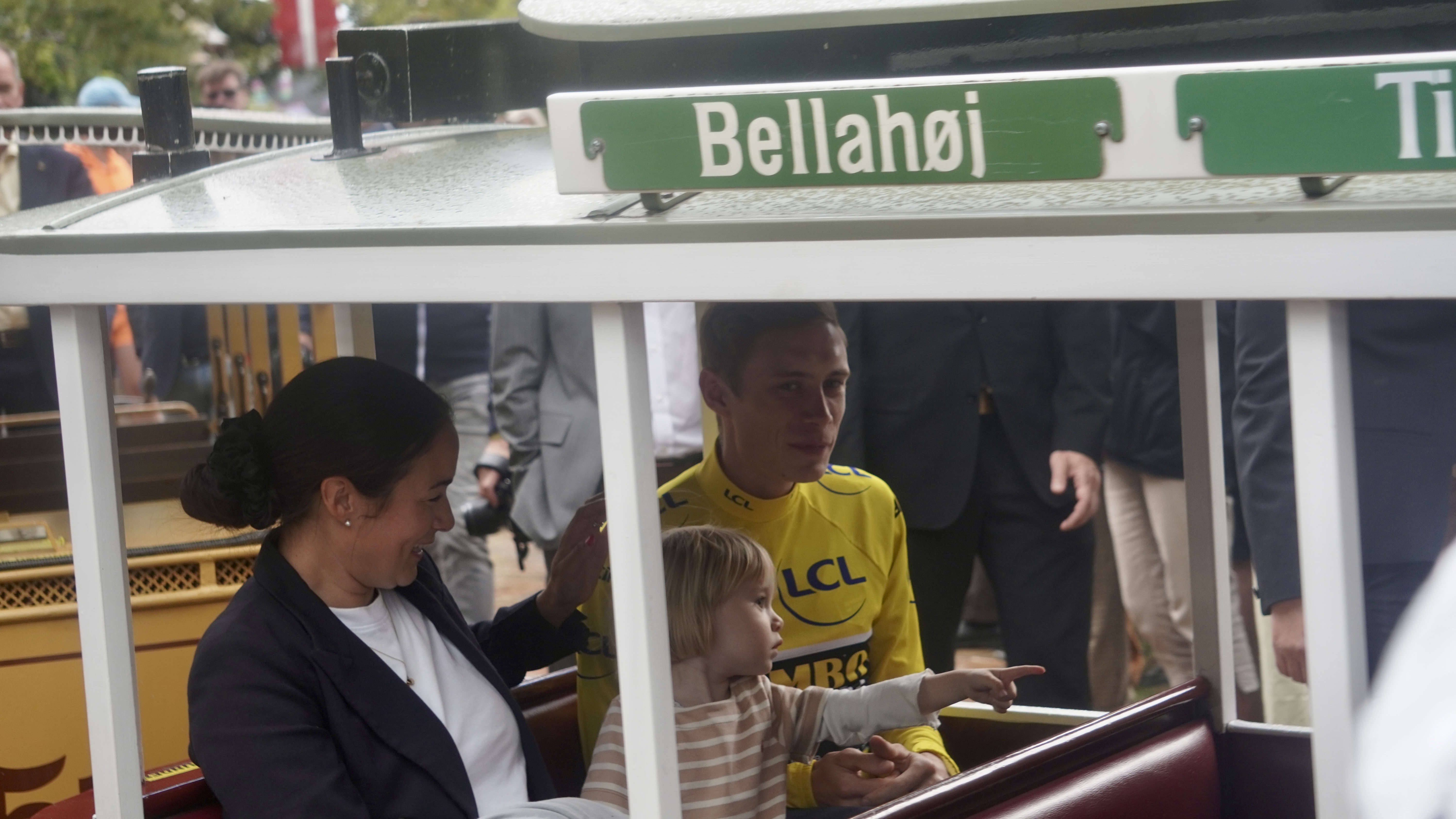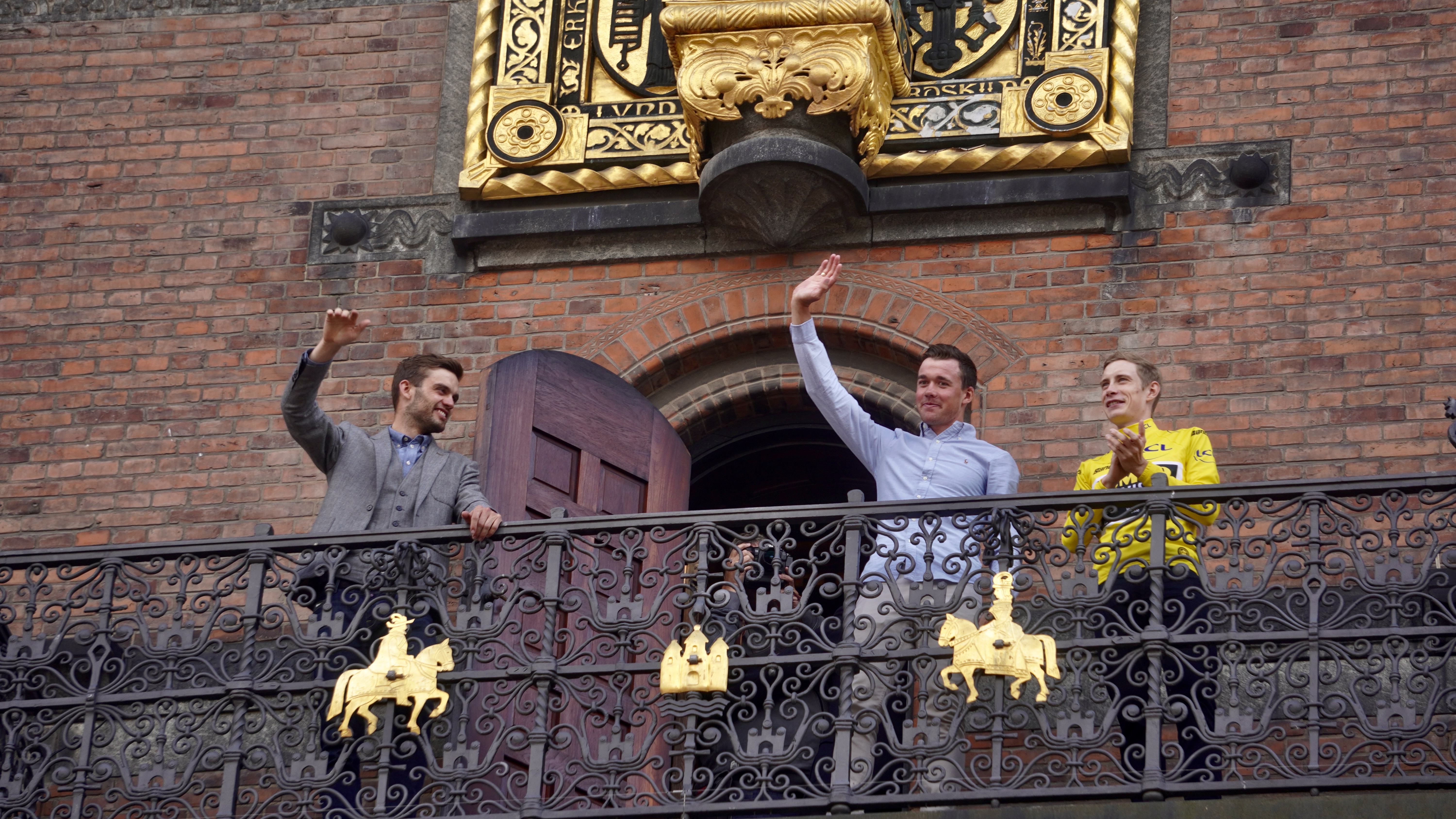 Dernæst fulgte et øjeblik, som mange havde ventet på. Det var tid til at træde ud på balkonen. Først kom Jonas Vingegaard alene ud, vinkende til den vrimmel af mennesker, der var samlet for at fejre ham. Dernæst fulgte han i følgeskab med Kasper Asgreen og Mads Pedersen, som også havde vundet Tour de France-etaper. Men det mest rørende øjeblik kom, da han stod der sammen med sin datter, Frida, og konen Trine, der strålede af stolthed ved hans side.