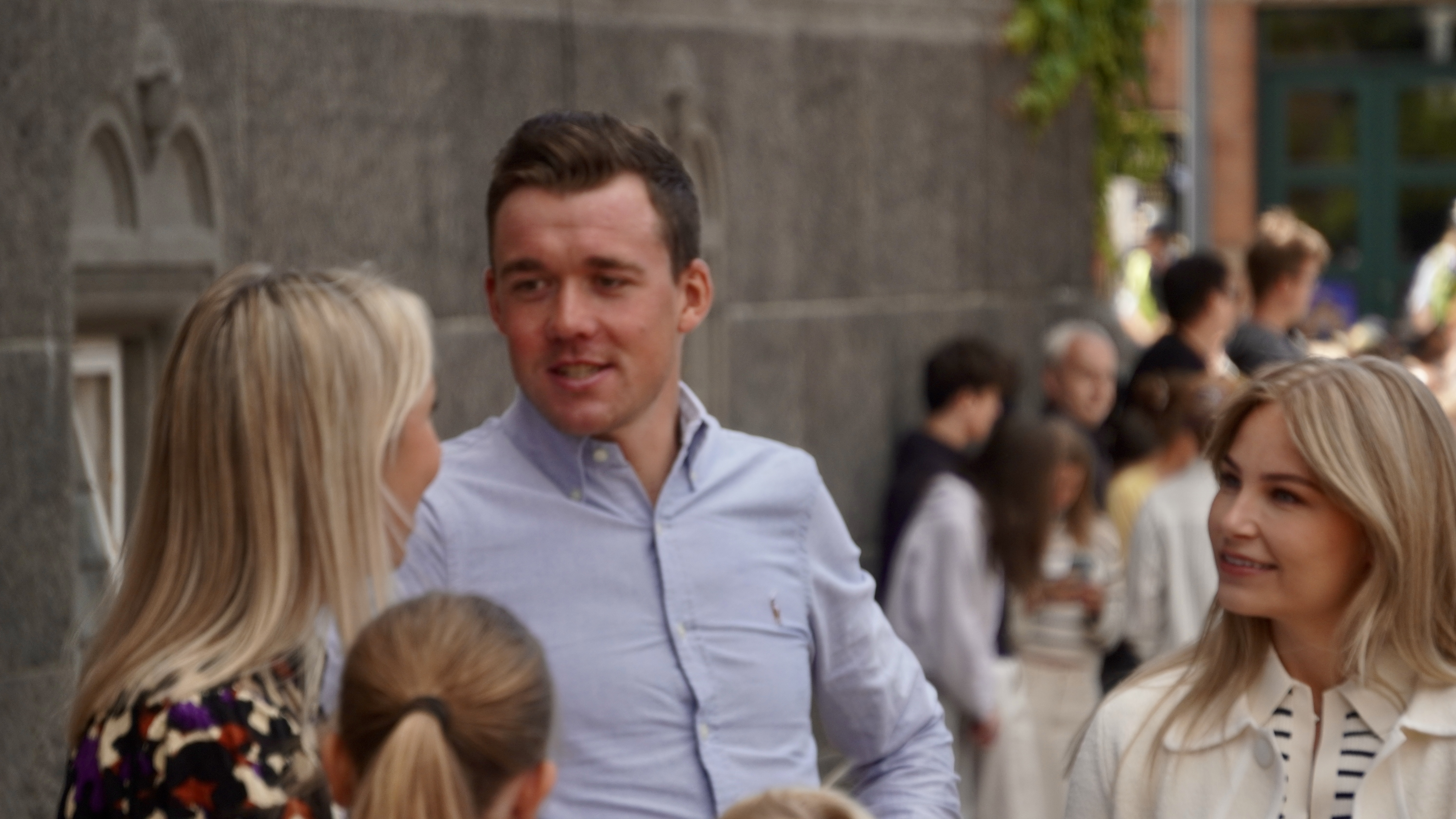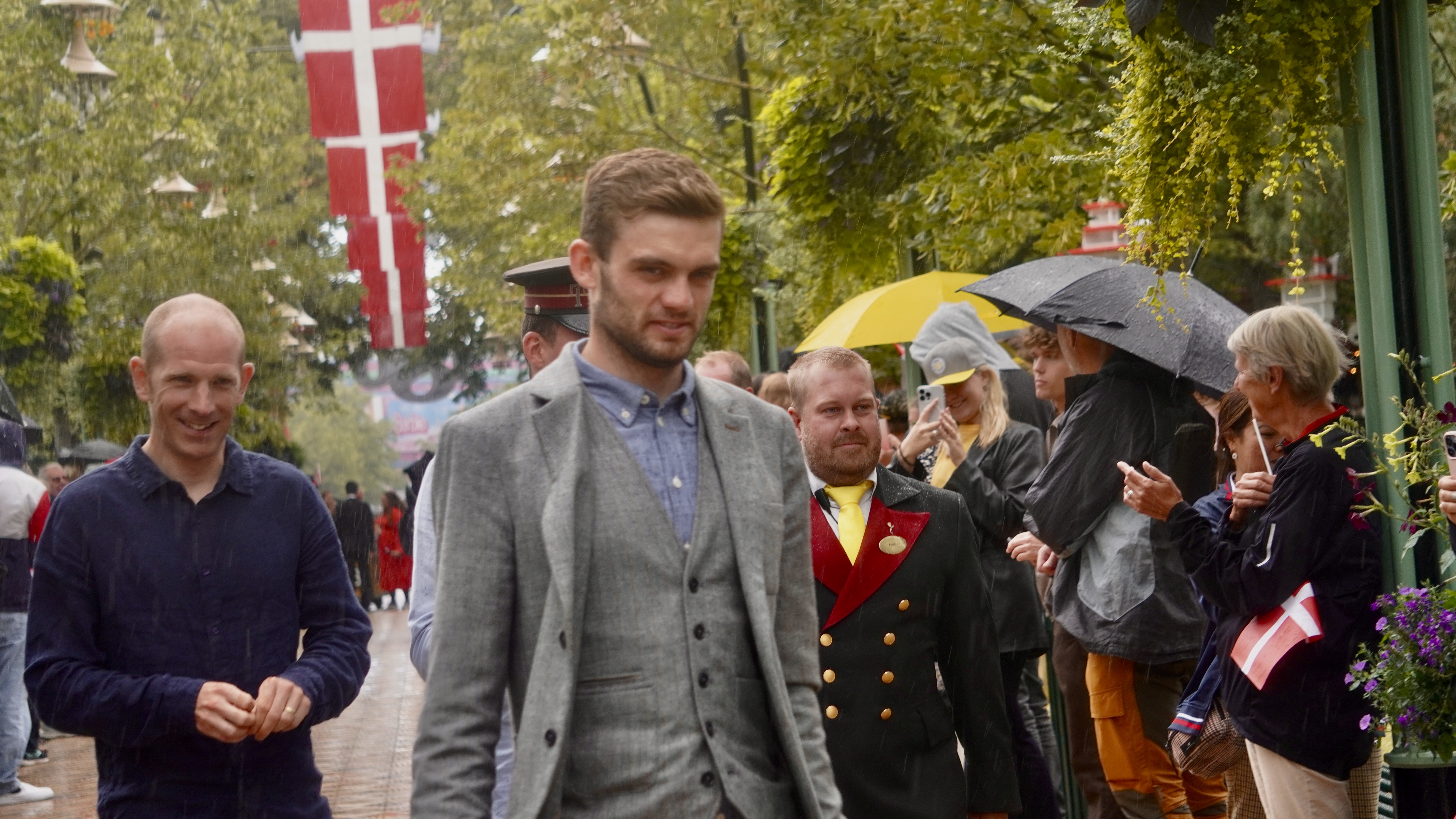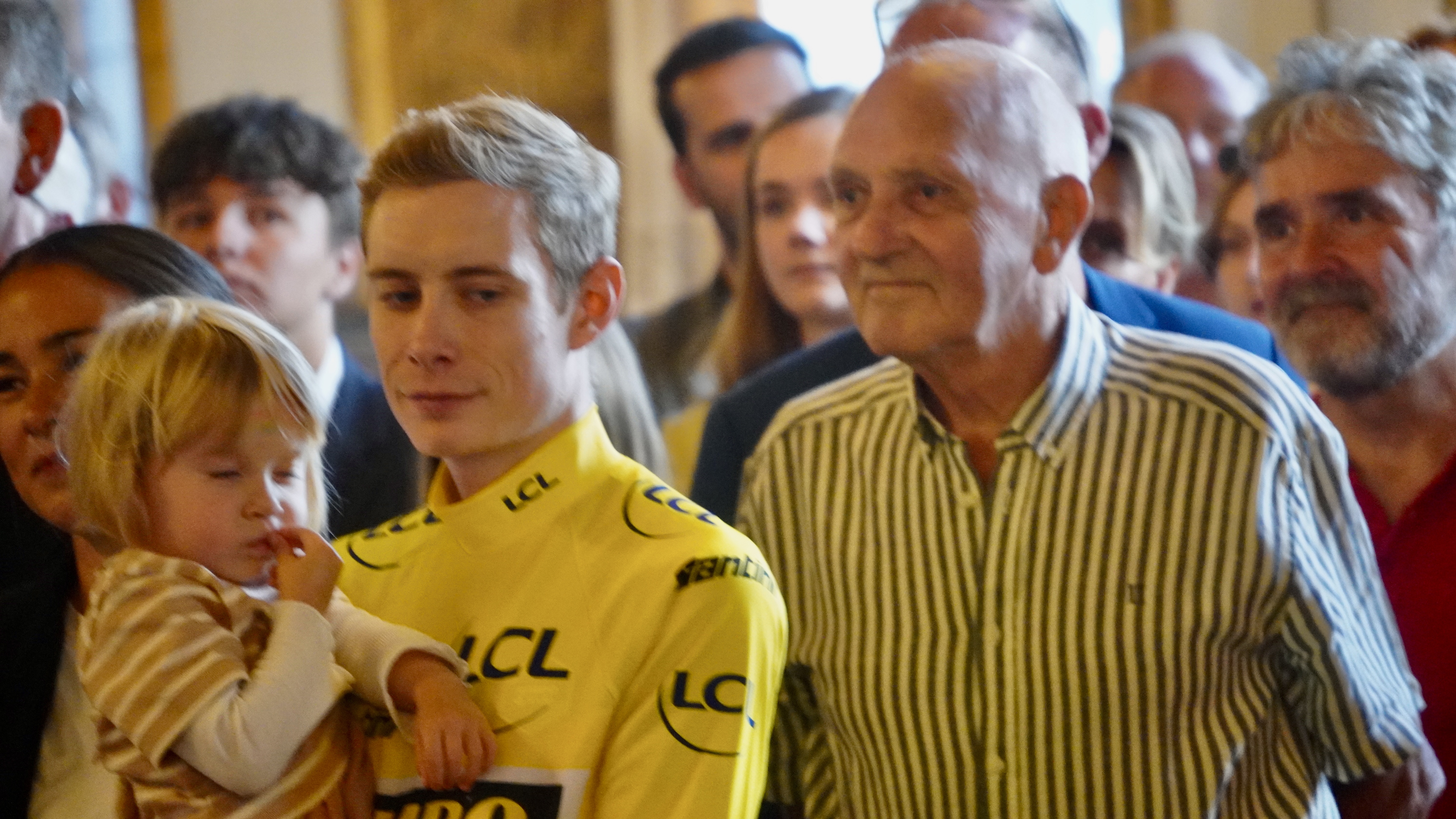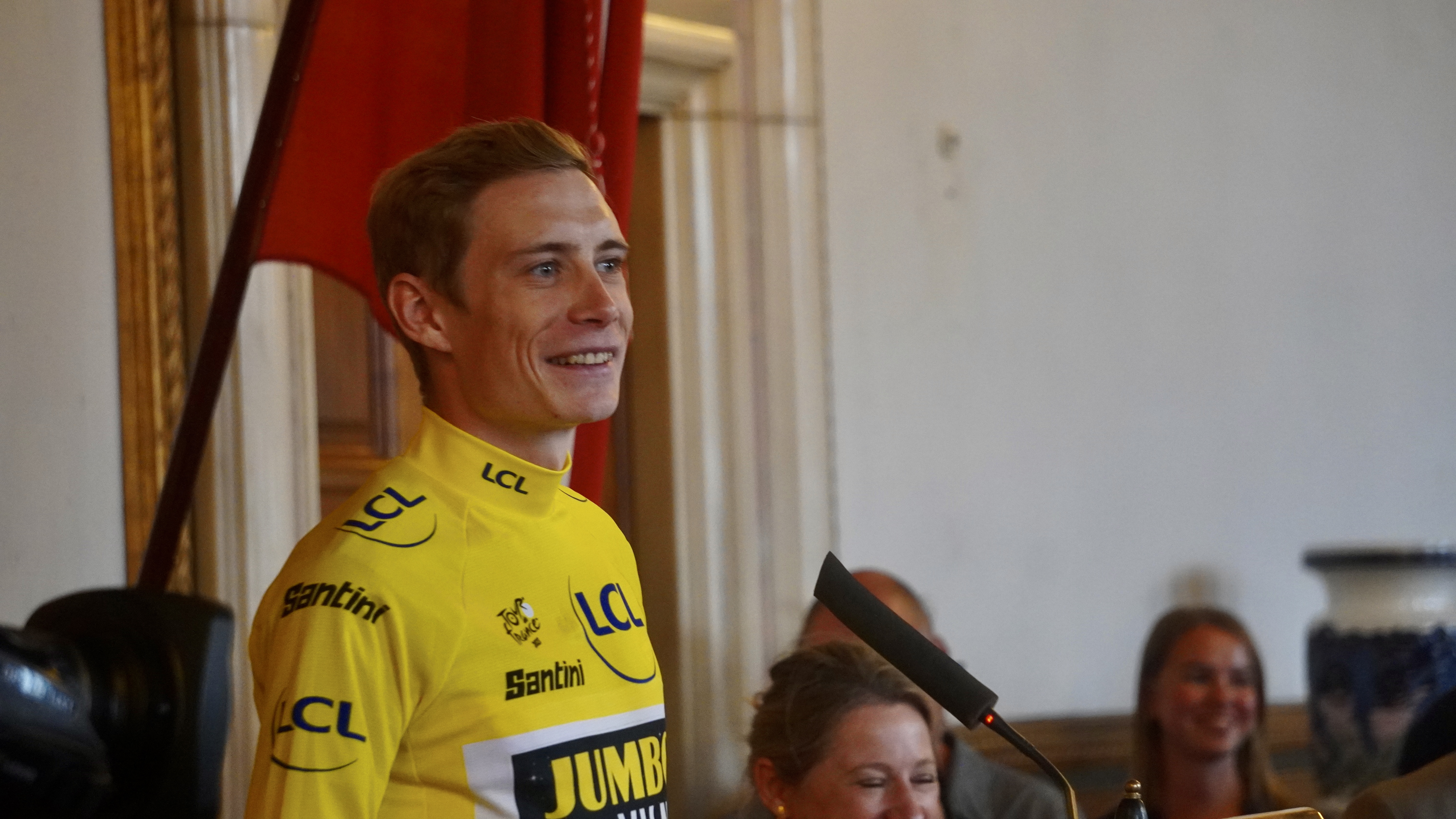 Mens alle ventede spændt på Jonas Vingegaards ankomst, fortsatte gæsterne med at strømme til området lige før indgangen til. Blandt de ankomne var Vingegaards forældre, Claus og Karina, samt de tidligere nævnte ryttere. Disse prominente gæster tiltrak opmærksomheden fra Jimmy Bøjgaard, der fik et par ord med hver enkelt ved indgangen til Rådhuset.