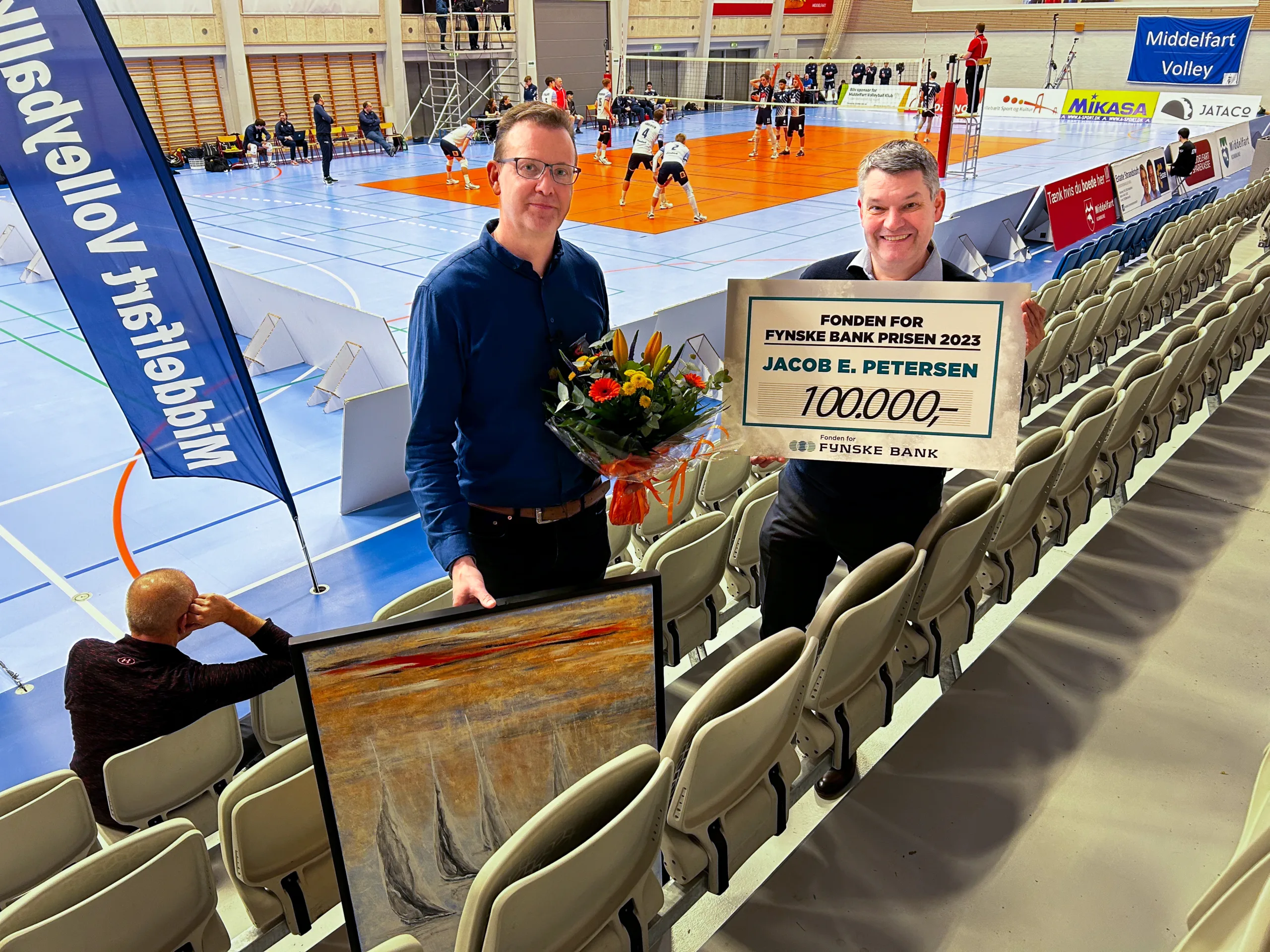 Jacob E. Petersen blev hyldet med Fonden for Fynske Bank Prisen og 100.000 kroner for sit enestående arbejde som frivillig leder og sportschef i Middelfart Volleyball Klub. Han modtog prisen under Middelfart Volleys ligakamp mod Gentofte mandag den 27. februar i Lillebæltshallerne og gav pengene videre til klubben.