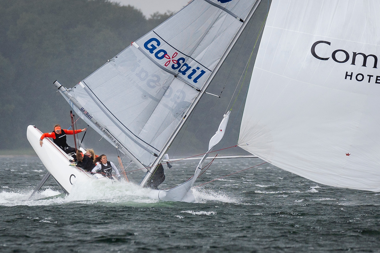 – Det er vi helt godt tilfredse med, men der er lang vej endnu. Første sejlads mod hollænderne er intens med blandt andet en luffeduel med spiler på kryds. Vi får tildelt dem to straffe, men vi rammer ret klodset bundmærket lidt efter, så det blev lidt tæt, men dem havde vi styr på, forklarer Lea Richter Vogelius, som i anden sejlads skulle op mod en af storfavoritterne, Anna Östling.