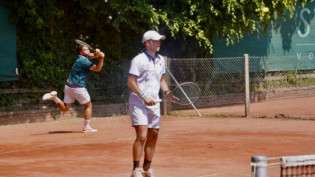Efter singlerne fulgte en kort pause, hvor Christian Westermann fra Erritsø genopladede med væske og opmuntring fra hans holdkammerater. Han fortsatte derefter i den første double sammen med Hans Christian Hansen mod Dupont-brødrene, der viste sig stærke og vandt begge sæt, 6-3 og 7-6.