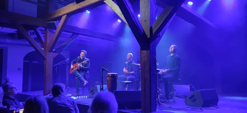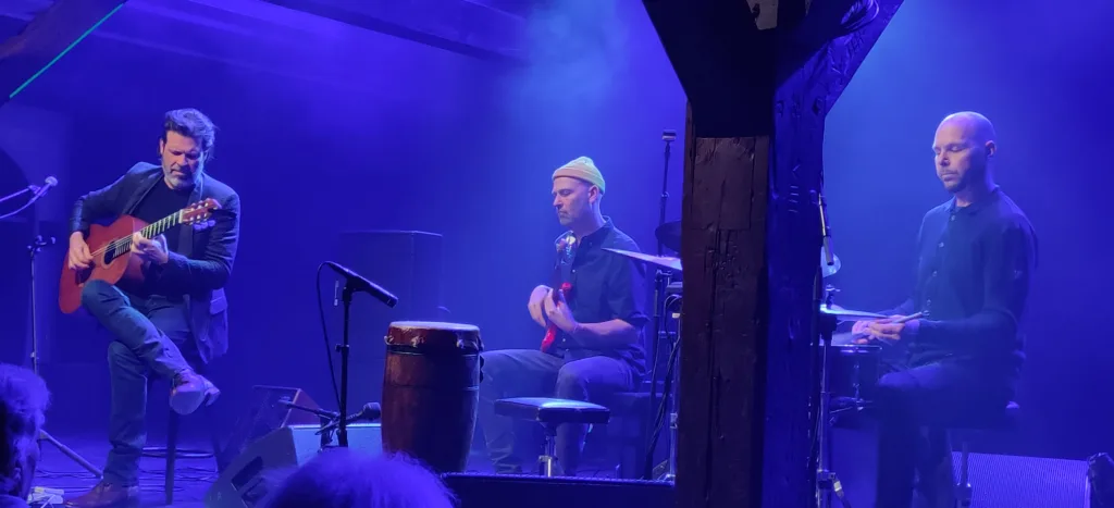 Det er svært at sætte Jacob i en bestemt musikalsk stilart, da hans egenkompositioner lyser af melankoli og lange soli, med den elektriske spanske lyd tilsat let rumklang hans Spanske guitar har, gav det en lidt skarp tone som der ikke var meget spansk over, måske fordi Jacob brugte plektrum? Sammensat med elbas og percussion live og lidt hjælp af en looper eller lignende, var lyden dog bred. Som anmelder konkluderer jeg, at Jacob er sin egen herre og spiller spansk guitar på sin egen måde. Jeg kalder det, latinostil tilsat lidt musikalsk classic Cuba Libre med parasol i og en musikalsk paella, man kan drikke øl til, kære læser den må I selv fortolke.