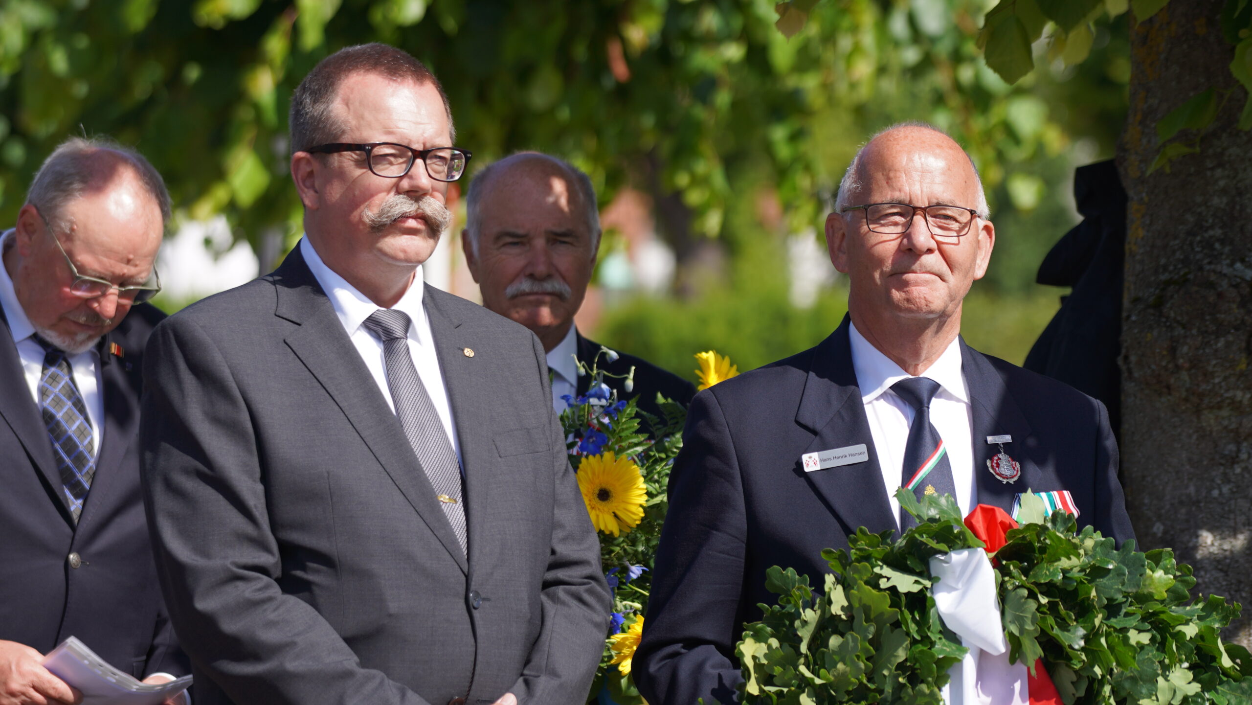 Stemningen på Sct. Michaelis Kirkegård var respektfuld, da borgmesteren den 5. juli 2024 sammen med en repræsentant fra Slevig-Holsten gik stilfærdigt frem mod graven for at lægge en krans i fællesskab.