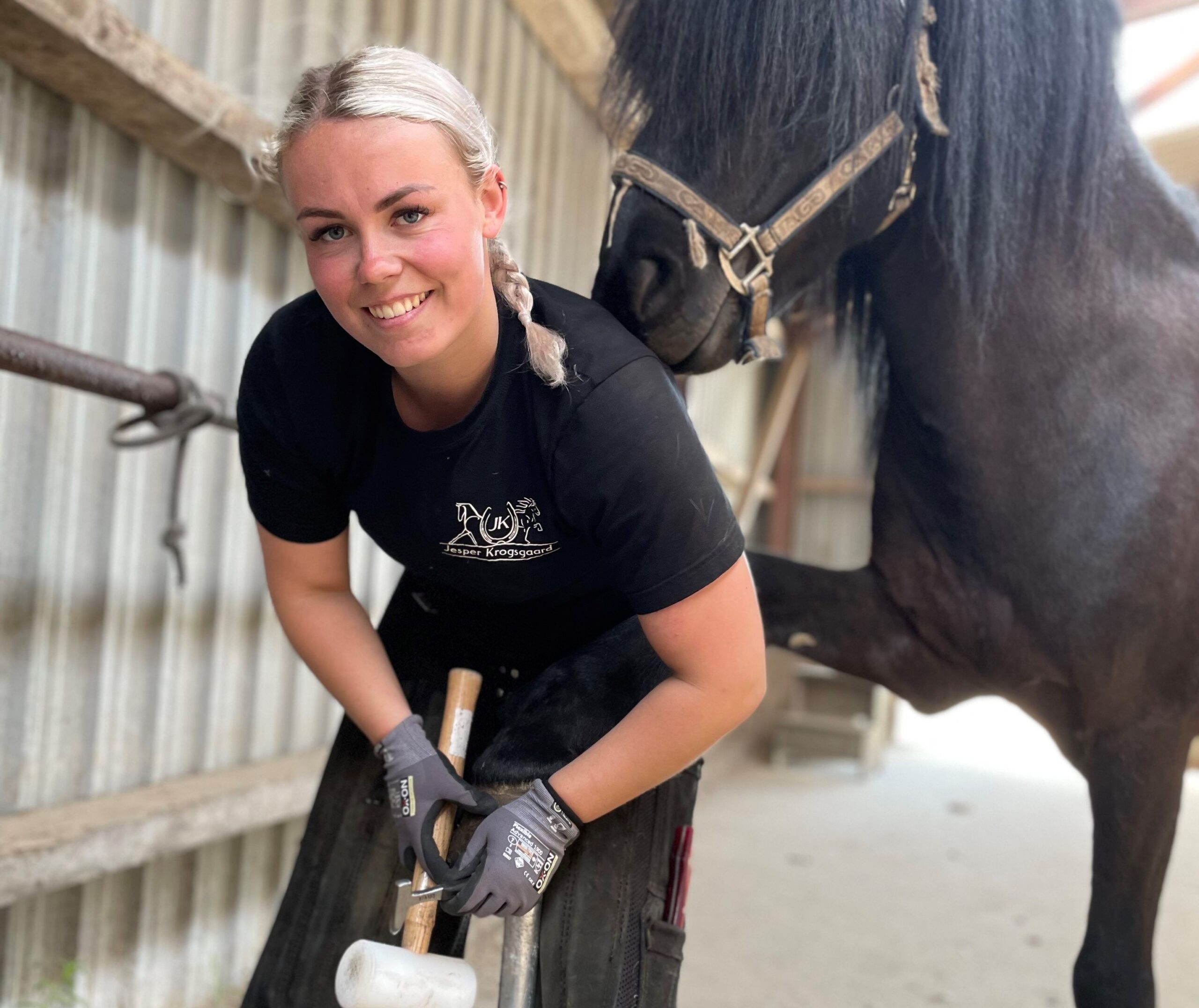 – Da jeg var under uddannelse hos gardehusarerne i Slagelse, troede jeg også, at beslagsmed-faget kun var for mænd. Men det billede fik vores faste beslagsmed hos husarerne ændret, og så kom jeg i lære her hos Jesper Krogsgaard i Hirtshals. Fra mange mestre hører jeg nu, at vi piger er mere grundige og perfektionistiske. Det giver tilfredse kunder, og mange flere vil gerne tage kvinder i lære. Måske er vi flere kvinder end mænd i faget om 10-15 år, siger Dea Høm.