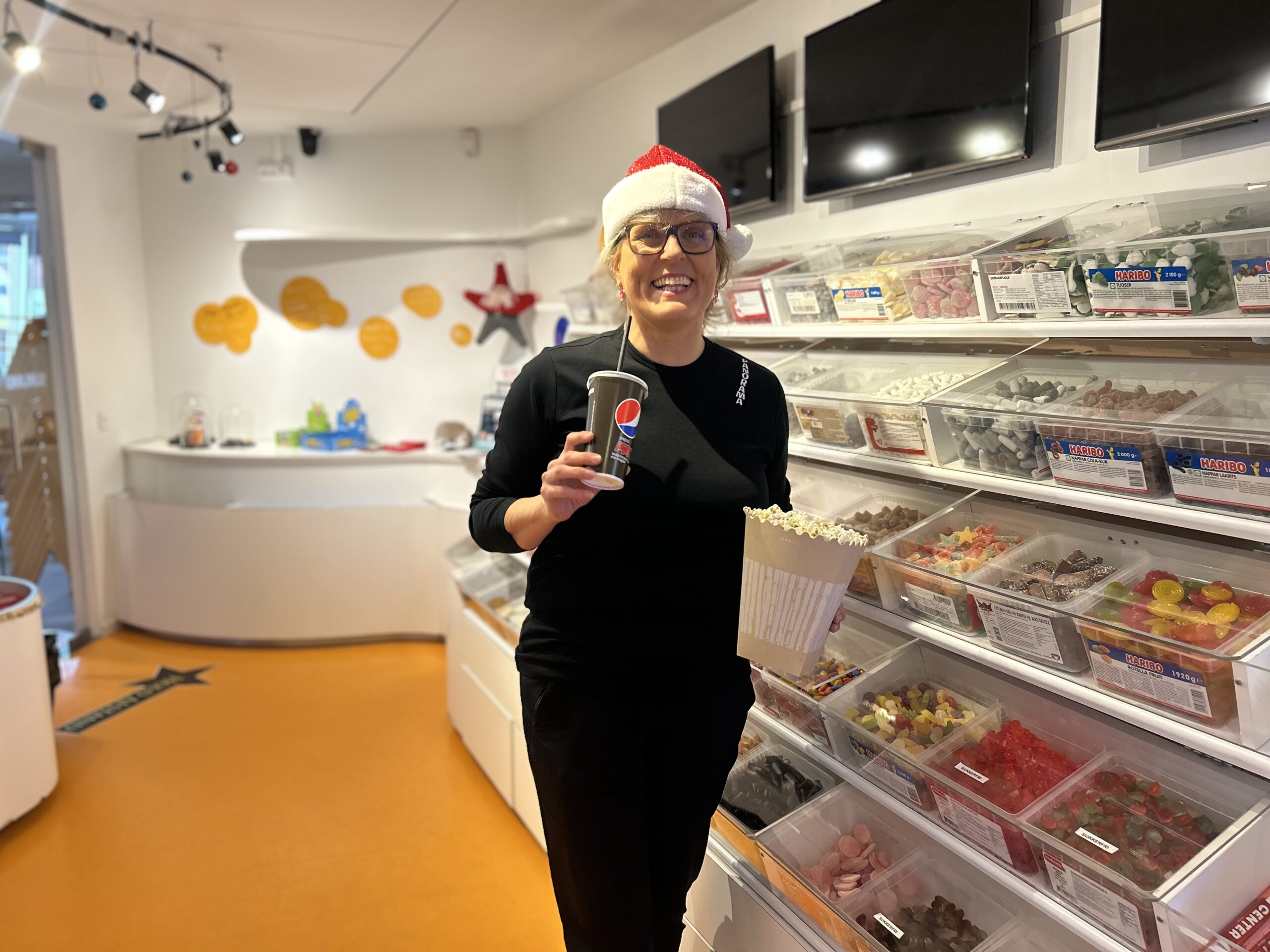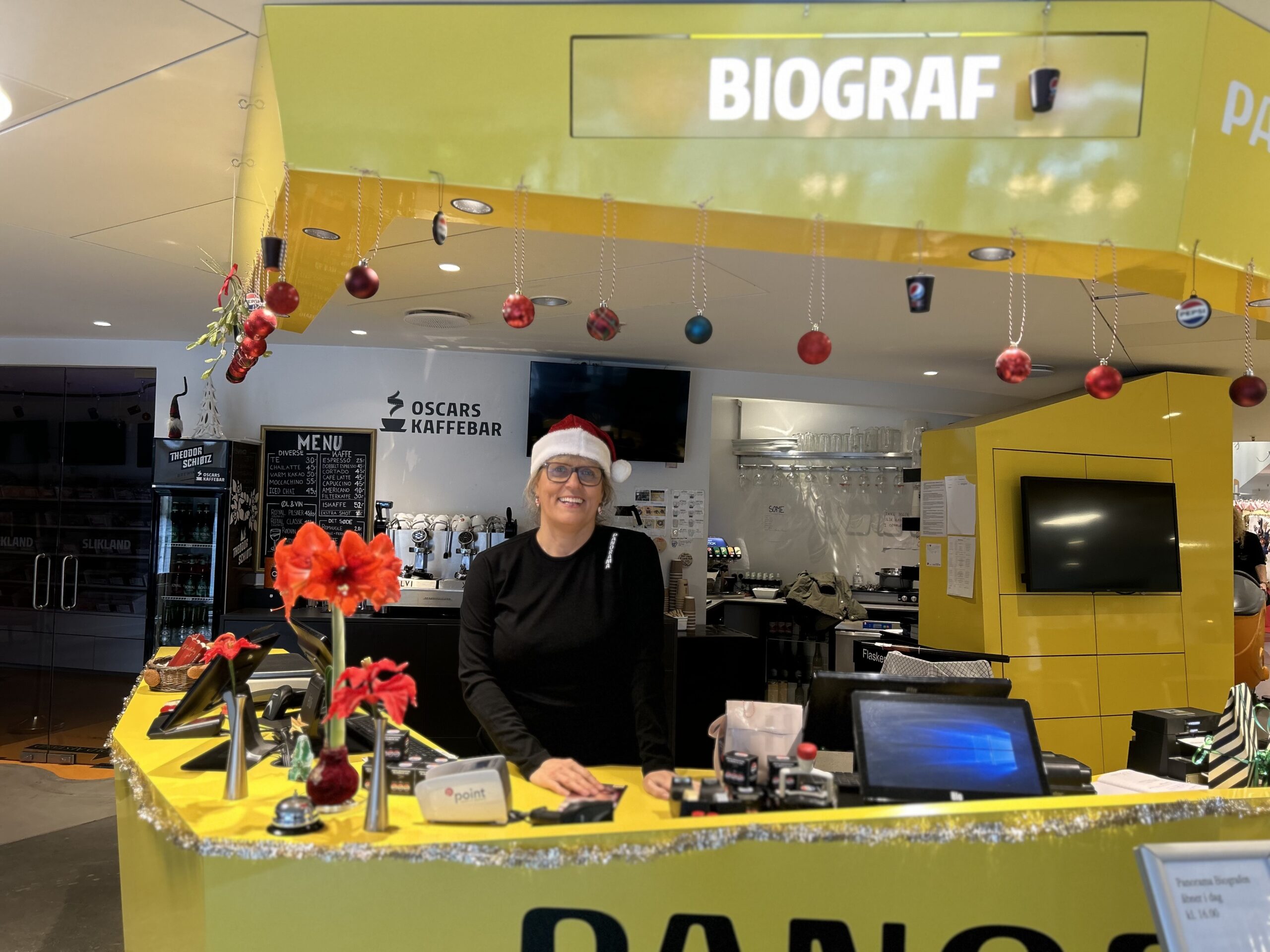 Panorama Biograferne pynter altid op, og medarbejderne går gerne i gang før december. »Vi har nogle medarbejdere, der ganske enkelt elsker at pynte op. De spørger allerede i november, om de må gå i gang. Og jeg synes, det gør en forskel. Det skaber varme og genkendelighed, og det er noget, vores gæster lægger mærke til.«