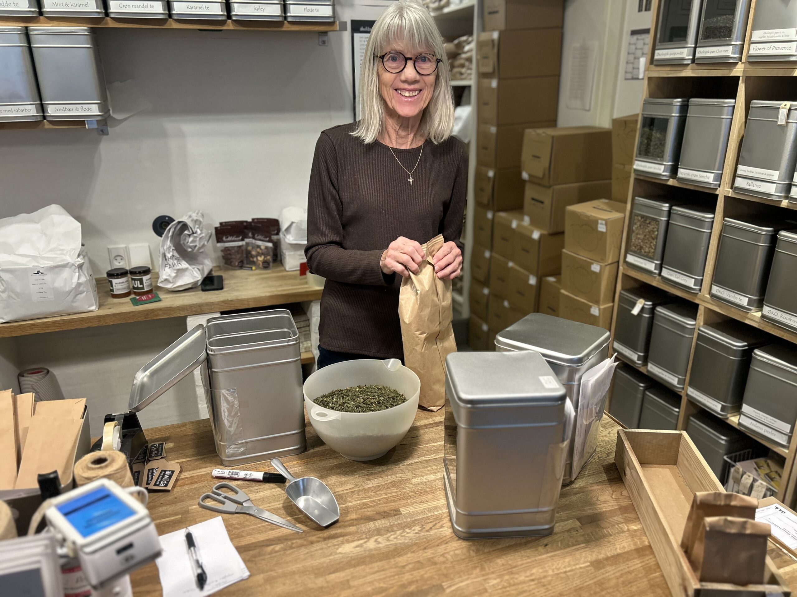 »Det er byens kaffe- og tebutik,« siger indehaver Marianne Albertsen og sender et lille smil. »Vi har over 200 teer i løsvægt og mere end 20 kaffer fra forskellige verdensdele. Og så laver vi gaveposer og gavekurve i alle prisklasser.«