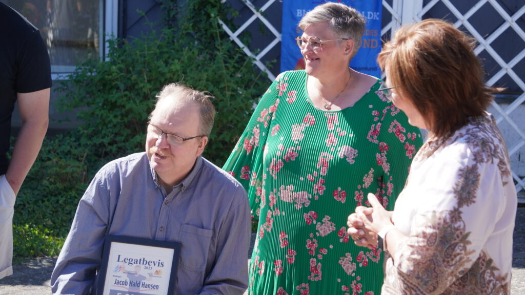 Solen stod højt på himlen, og duften af sommer spredte sig i gården på Fuglsangcentret i Fredericia. Træerne kastede en velkommen skygge over de tilstedeværende, og lyden af Kim Preuthun, der sang og spillede harmonika, svævede gennem luften. Dette idylliske scenarie dannede den perfekte ramme for Synshandicappedes Motionsfonds legatuddeling.
