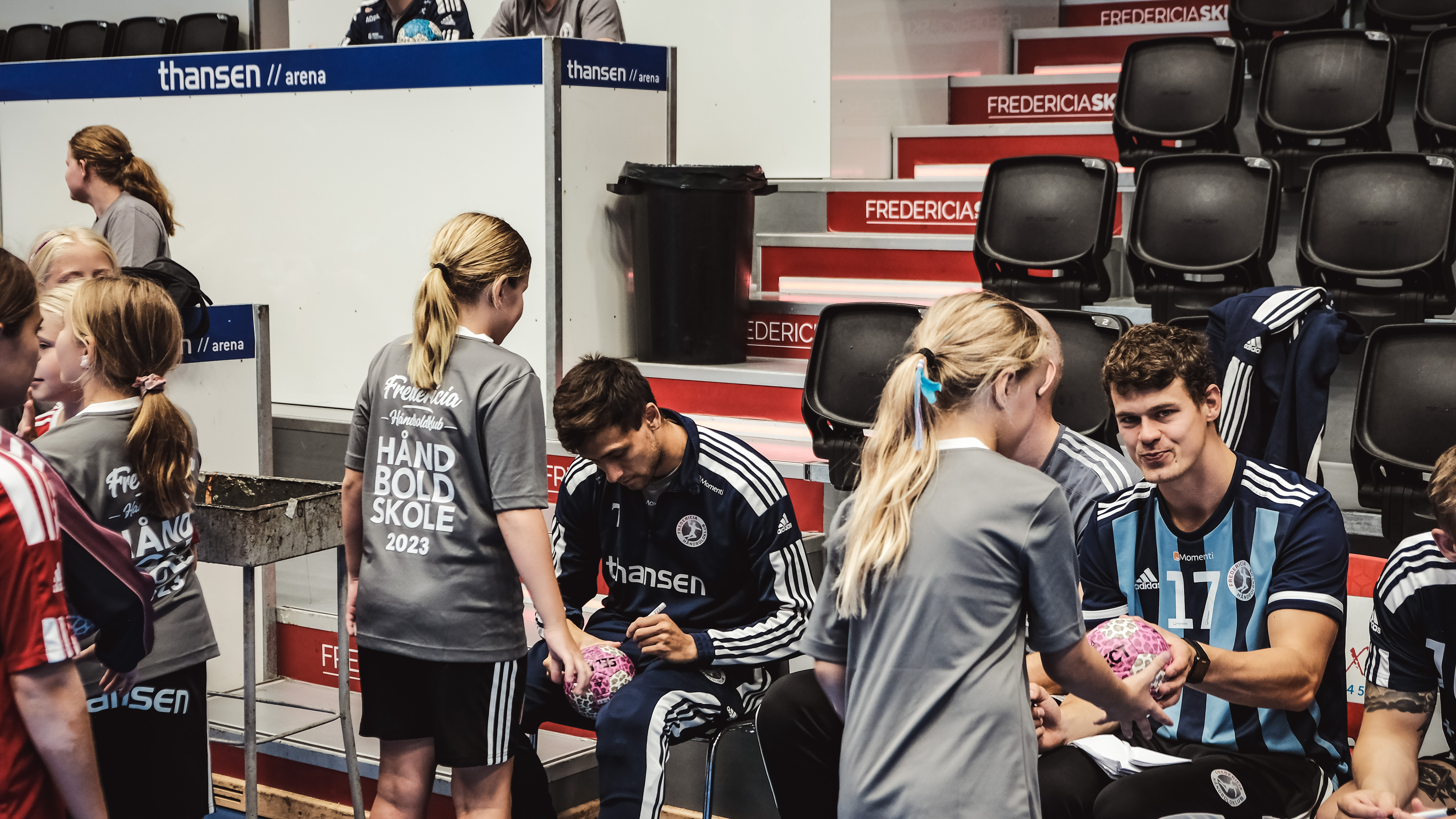Lyden af sportssko imod gulvet i thansen ARENA, sved og koncentration hos spillerne på banen. Det har været hverdag fra mandag-torsdag i Fredericia Idrætscenter i denne uge. Onsdag gæstede ligaherrerne håndboldsskolen, og det var noget som spillerne havde set frem til.