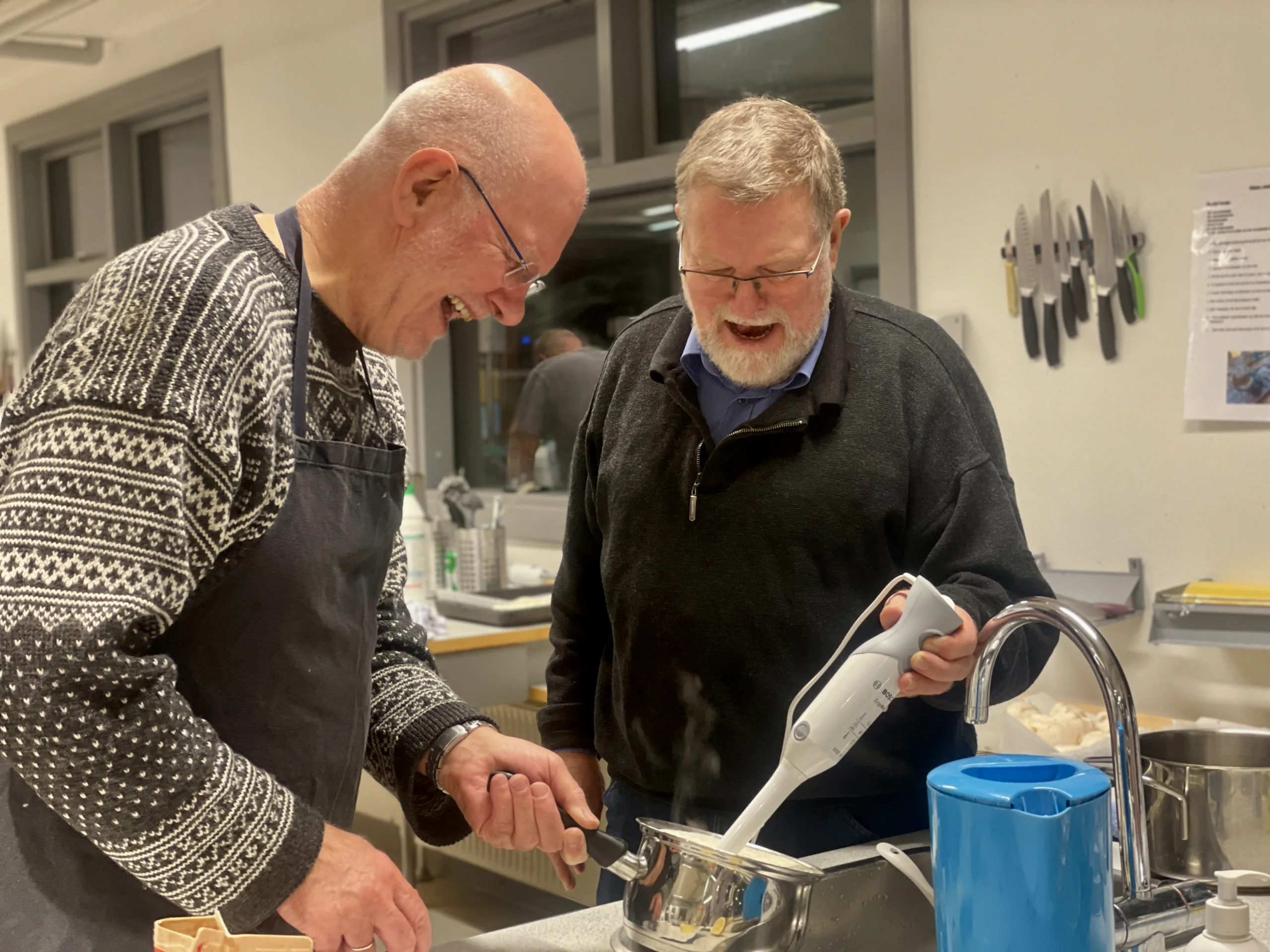 – Min egen kone derhjemme “klager” selv lidt over det, men det er ikke derfor jeg kommer her. Jeg kom for at være sammen med ligesindede mænd og vil hygge mig. Alle kan finde en opskrift derhjemme og lave mad, det er ikke så svært, men her har vi det hyggeligt sammen, siger han.
