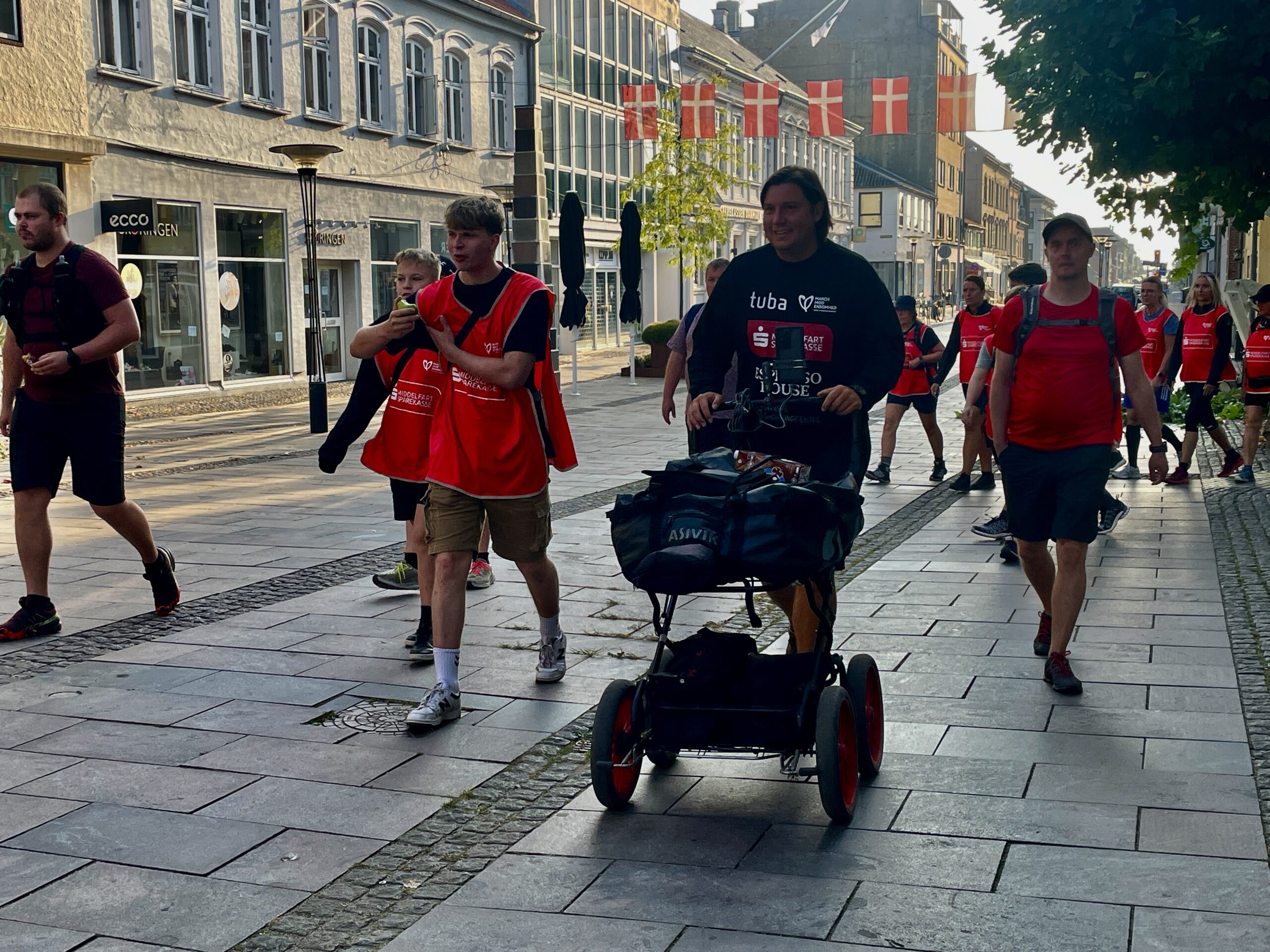 Efter Patricks tale var det tid til et fællesbillede. De deltagende stillede sig op foran Rådhuspladsen, hvor stemningen var præget af glæde og sammenhold. Kursen blev derefter sat mod Vejle – en rute på 24,4 km gennem Gothersgade og Danmarksgade. Undervejs ville de gå forbi forskellige vartegn og nydelige landskaber, alt imens de gik og talte sammen, skabte nye venskaber og delte personlige historier.