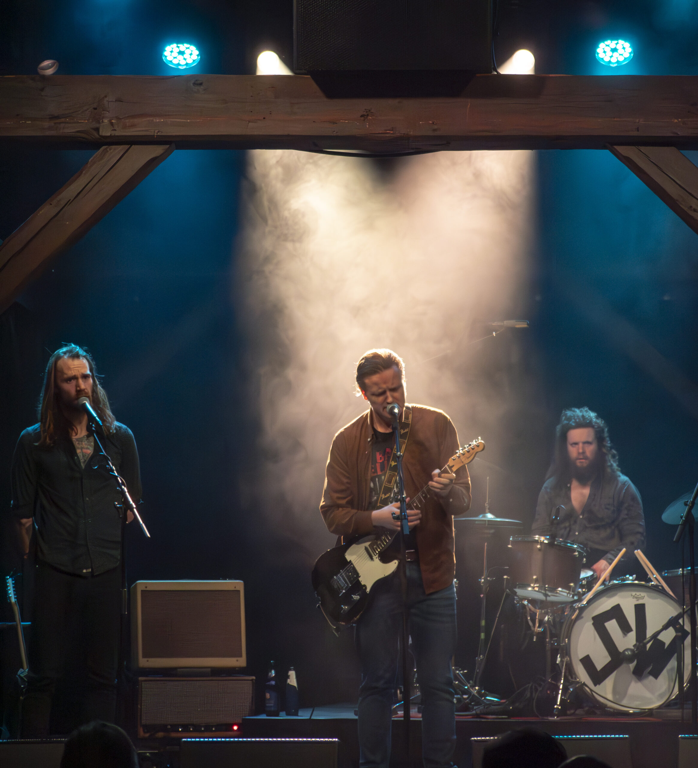 Ja han spillede – faktisk ret godt endda – på tromme. Men han slog så sandelig også på trommerne. Faktisk tæskede han dem så hårdt, at skind, crash-bækket, stortrommepedal, trommestikker en masse og gulvtam døde denne lørdag aften. Bremann slog ganske enkelt det trommesæt ihjel. En brutal død. Men en på en berigende måde. For vildmanden med det viltre hår understøttede som sagt i særlig grad Sebastians Wolffs dommedags-agtige tilgang til musikken.