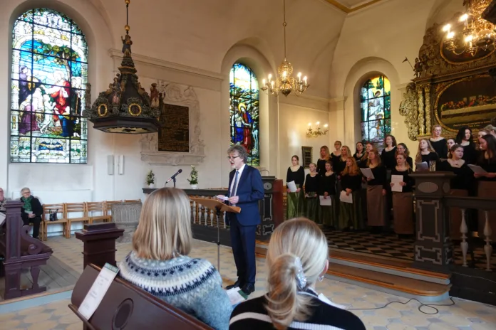 Orgelkoncert, koret lytter med siddende. Foto: AVISEN